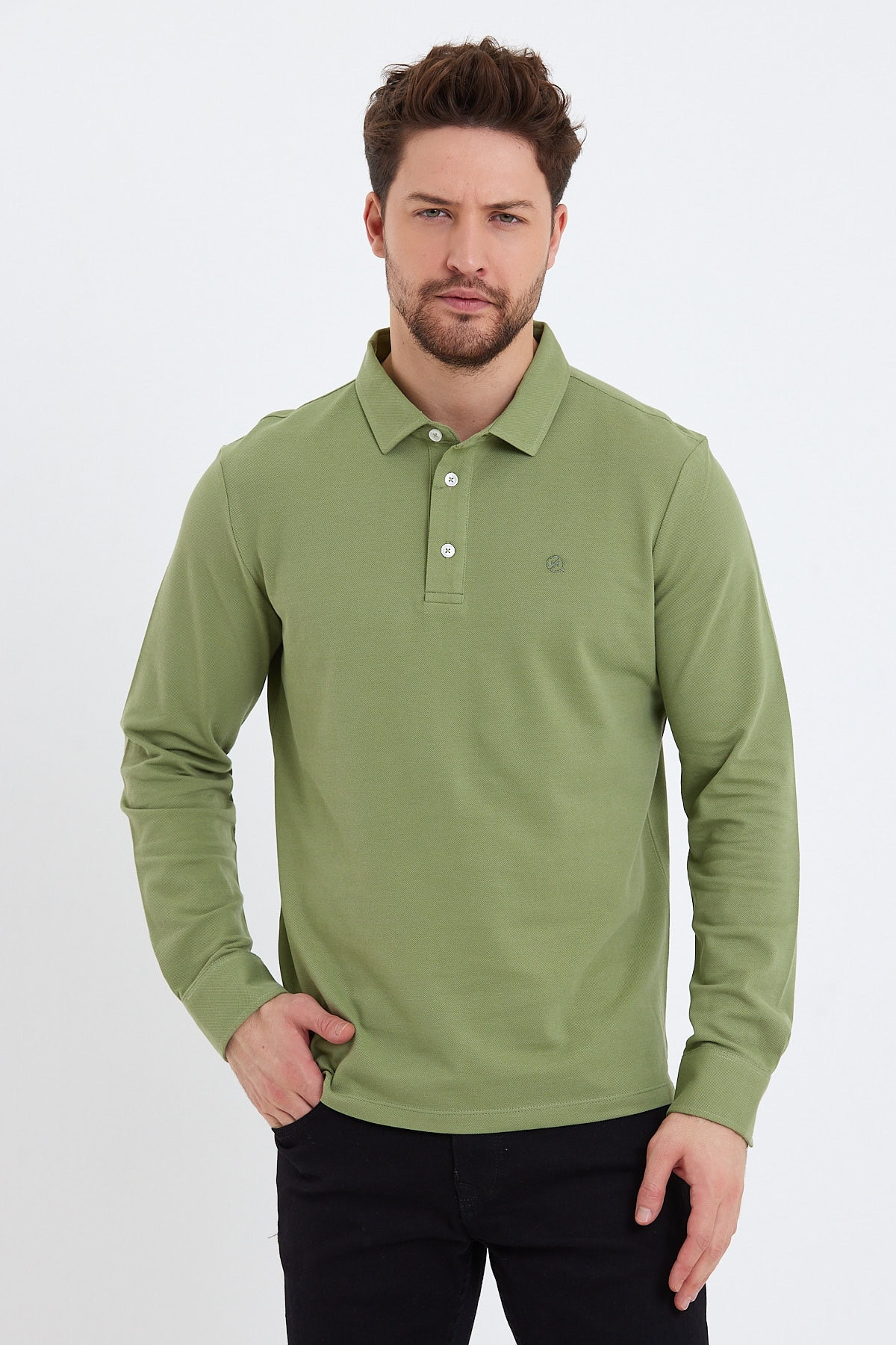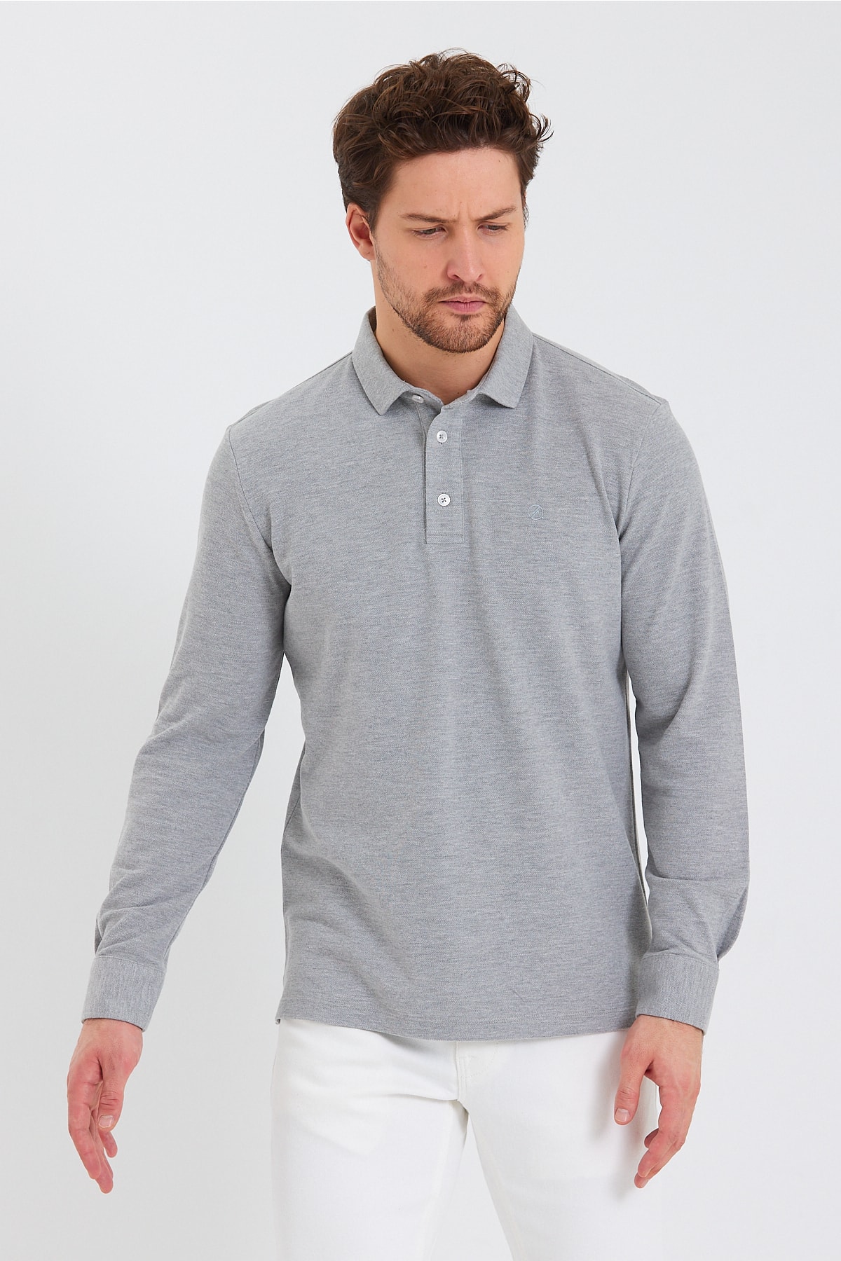 Erkek uzun kollu oversize polo yaka tişört, stil ve konforu bir araya getiren modern bir tasarıma sahiptir.