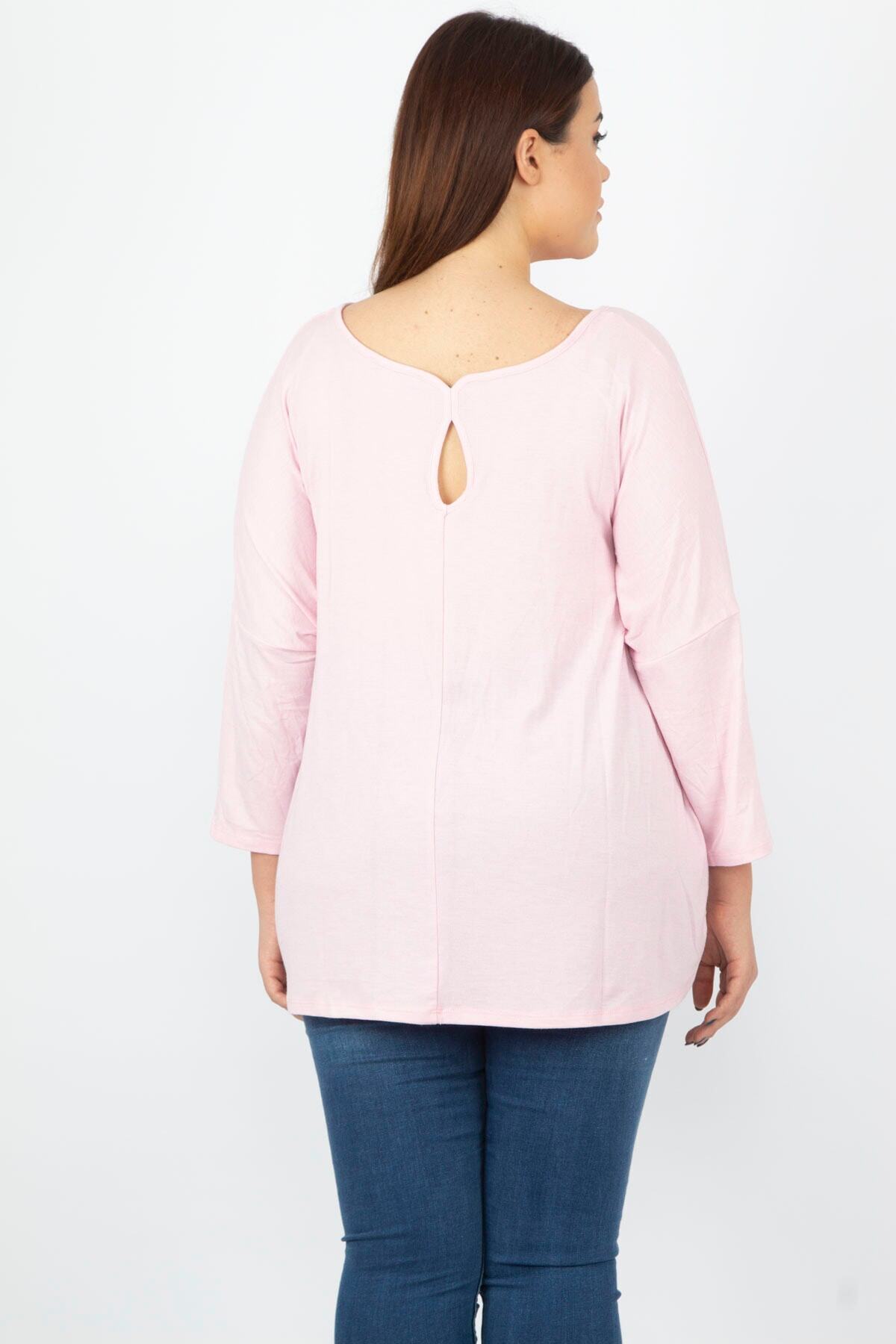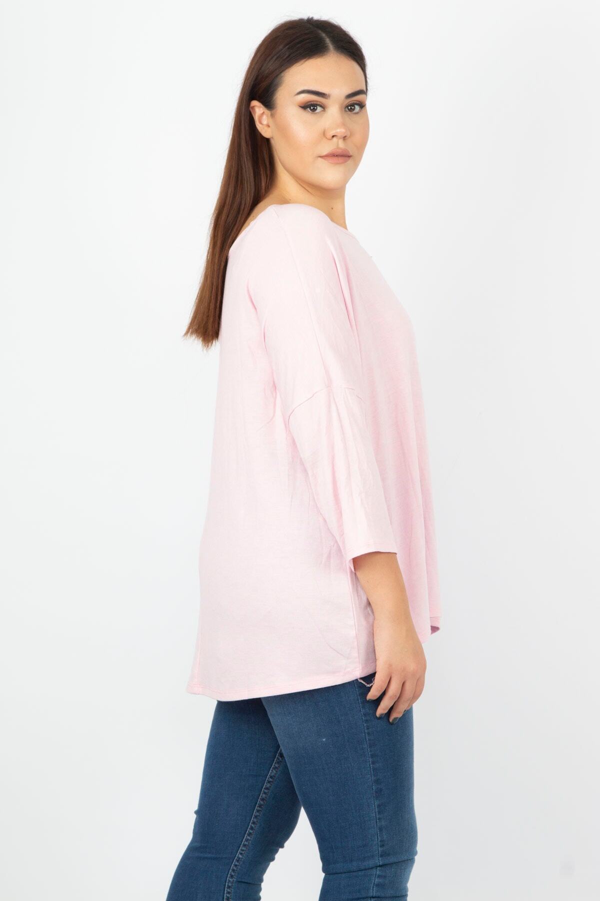- Rahat kesimi ile günlük kullanım için ideal, büyük beden pembe tunik.