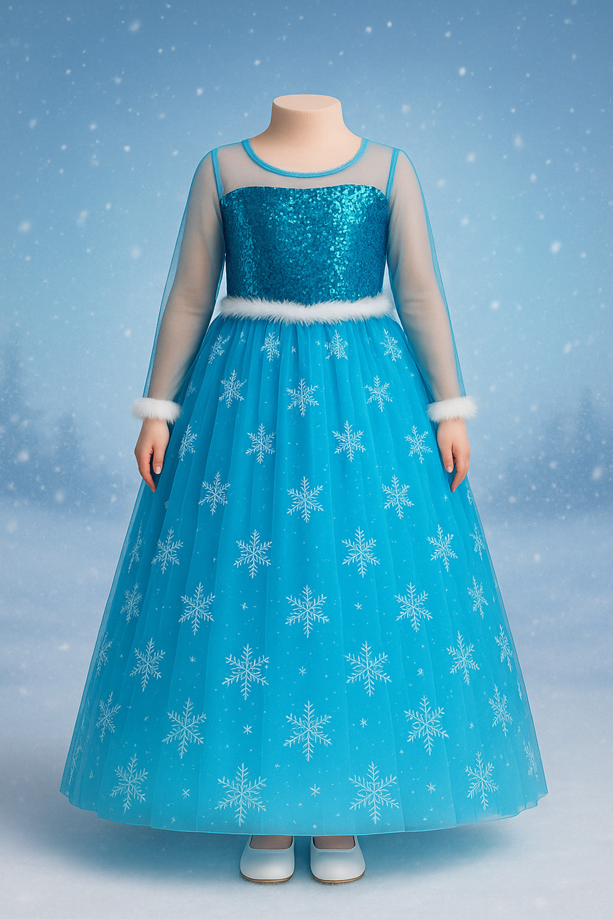 Çocuklar için özel olarak tasarlanmış, Elsa temalı bu kostüm, minik prenseslerin hayal dünyasını süsler