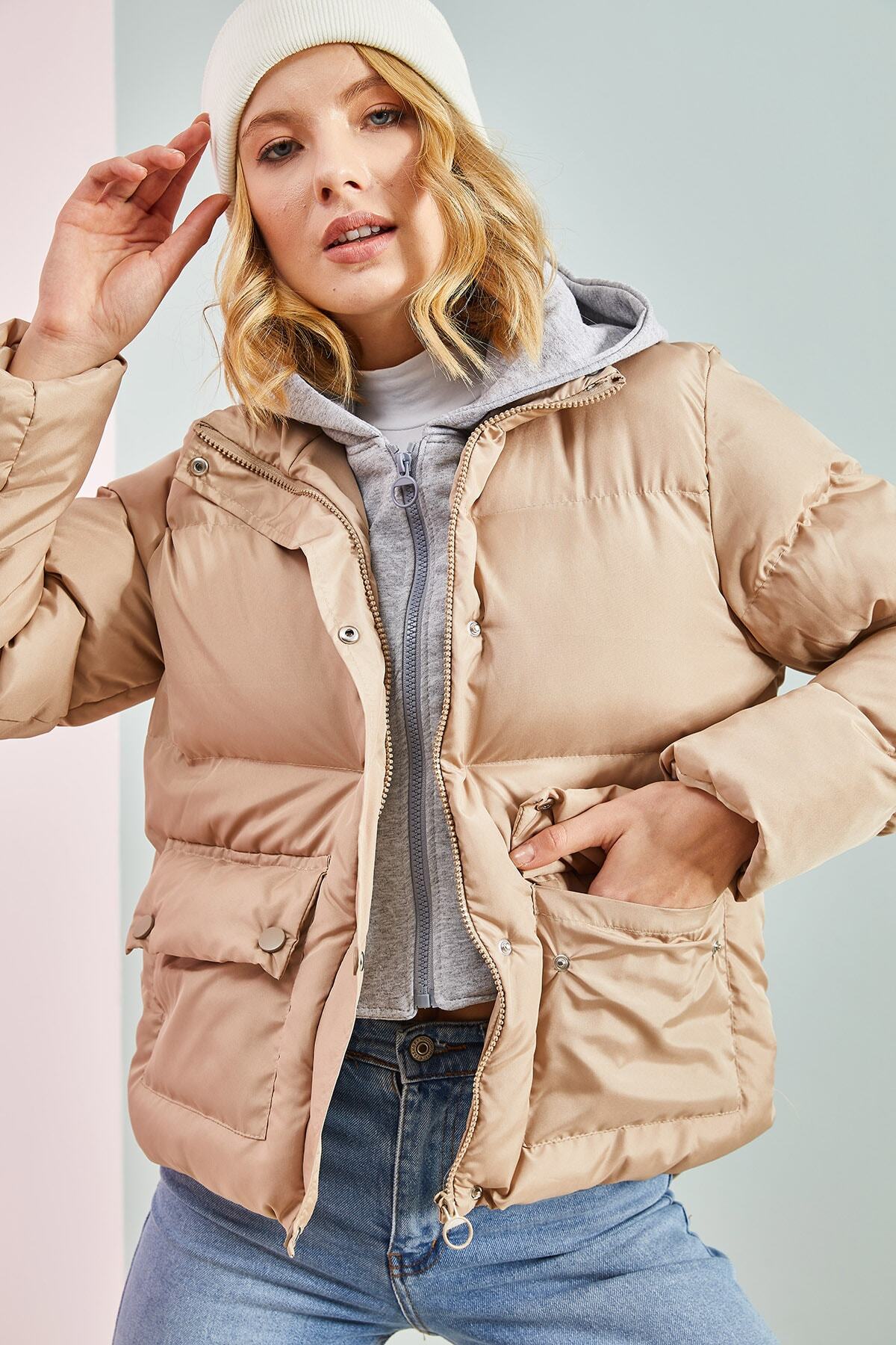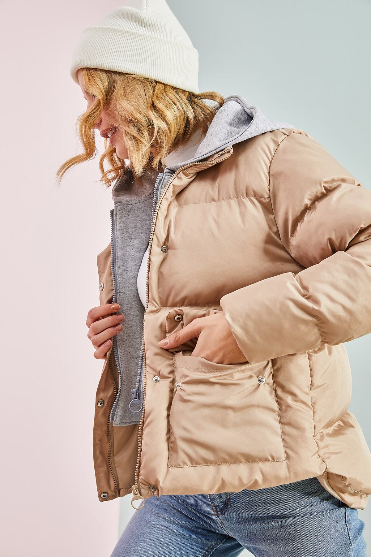 Şişme silueti ile soğuk havalarda sıcak tutarken, düz deseniyle sade ve şık bir görünüm sağlar