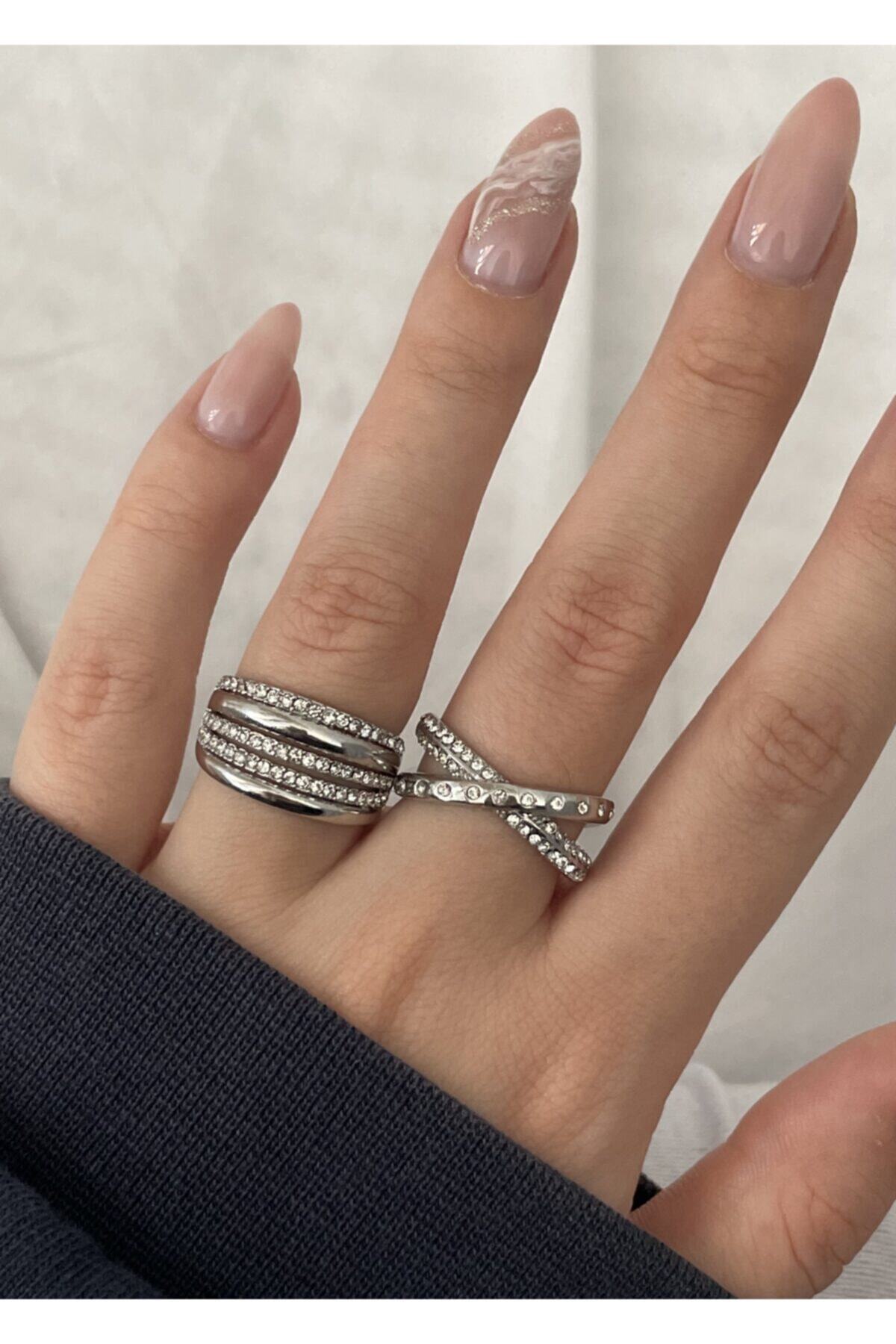 Göz alıcı zirkon taşlarla süslenmiş, şıklığınızı tamamlayacak çapraz ve düz yüzük çifti