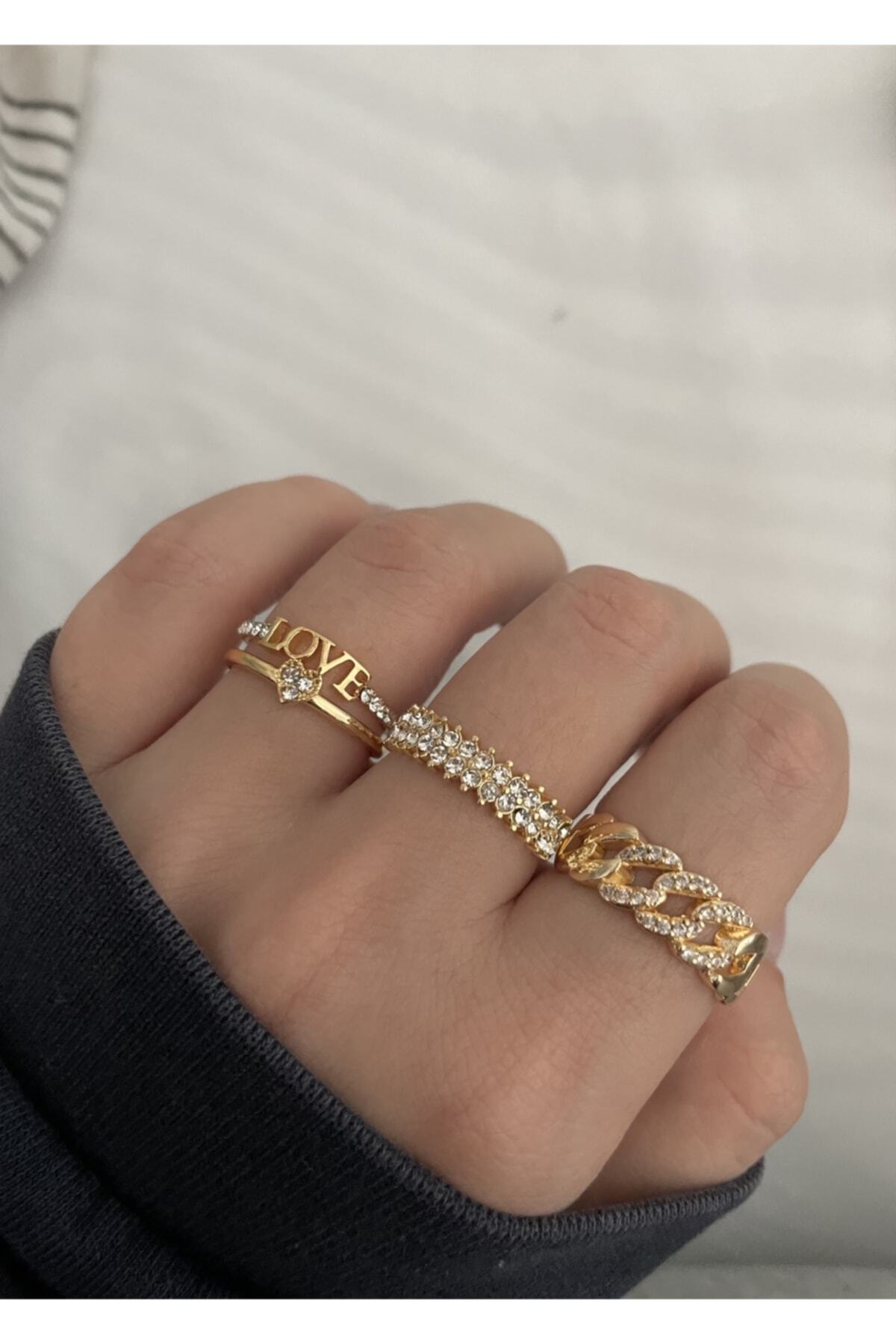Üçlü set halinde gelen bu yüzükler, farklı kombinlerinizde kolayca uyum sağlar