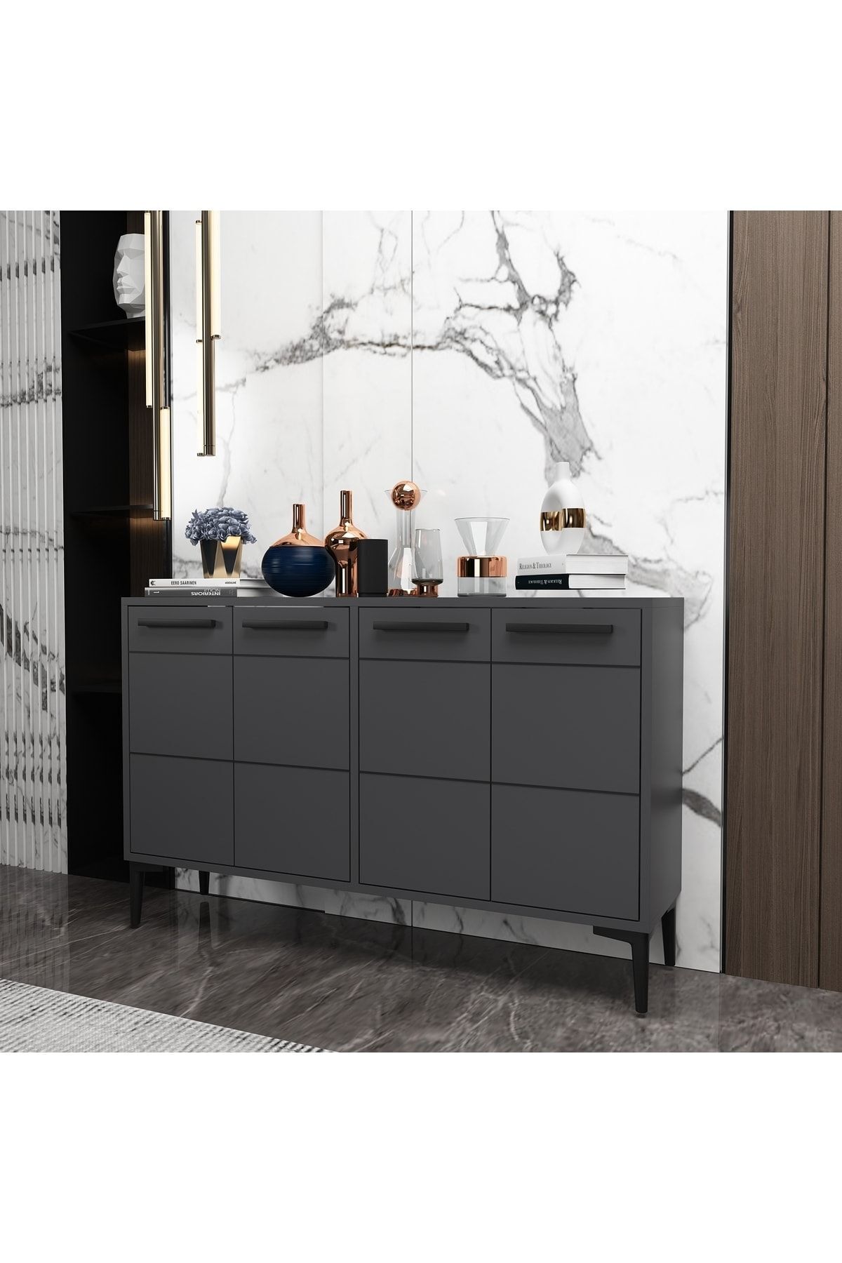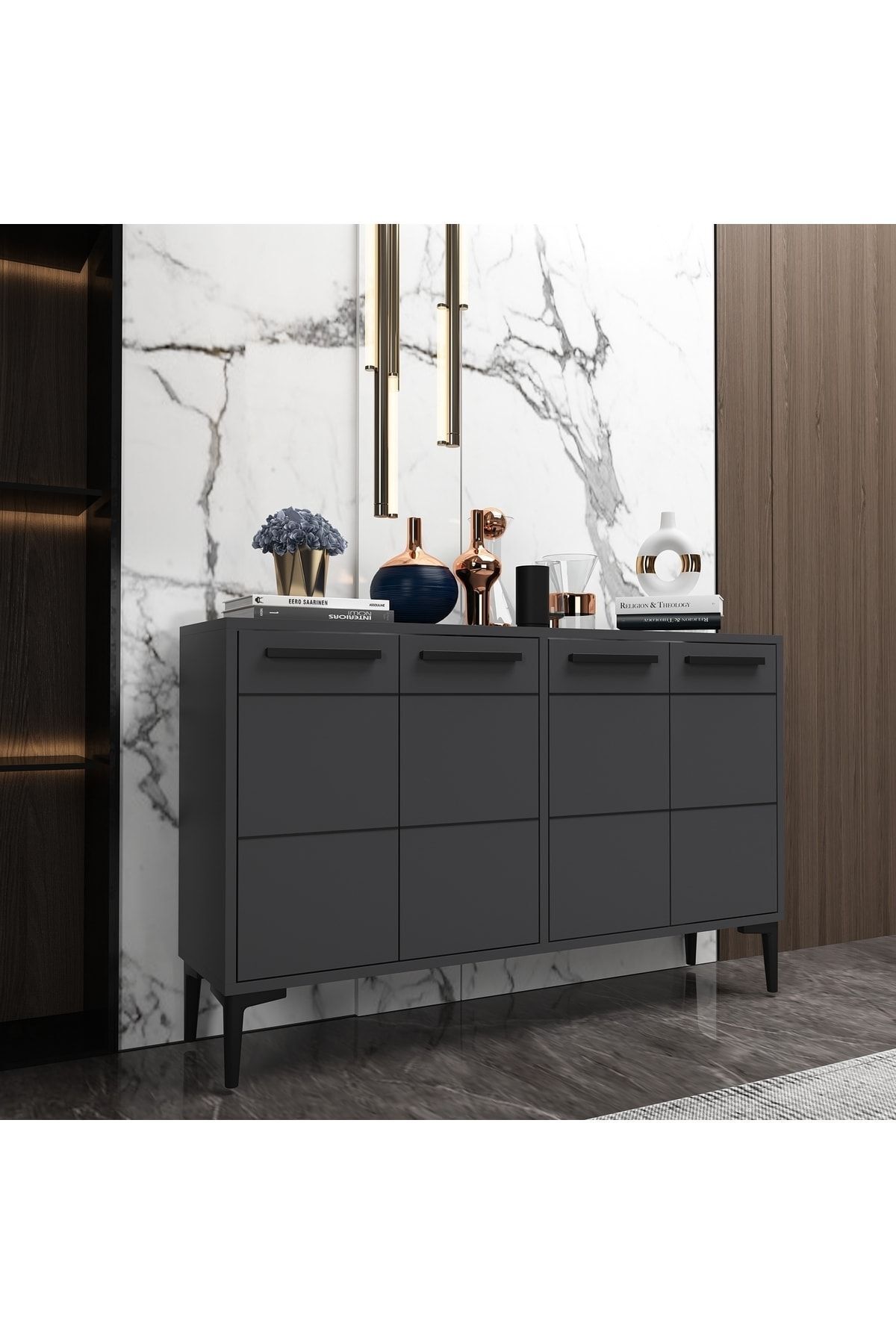 STRİA KONSOL, TV SEHPASI VE ÇOK AMAÇLI DOLAP OLARAK KULLANILABİLEN ANTRASİT RENGİNDE BİR ÜRÜN MODELİDİR