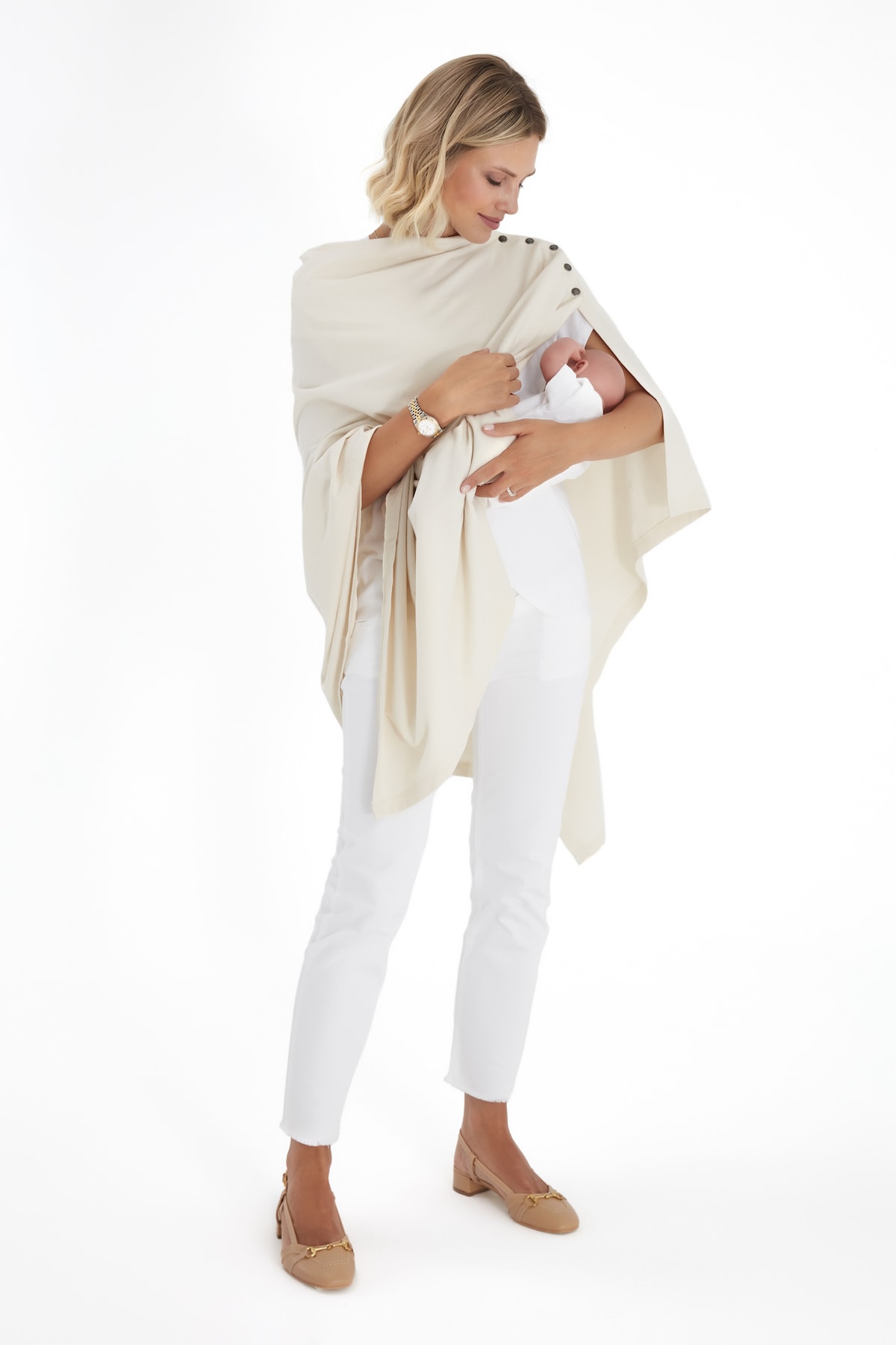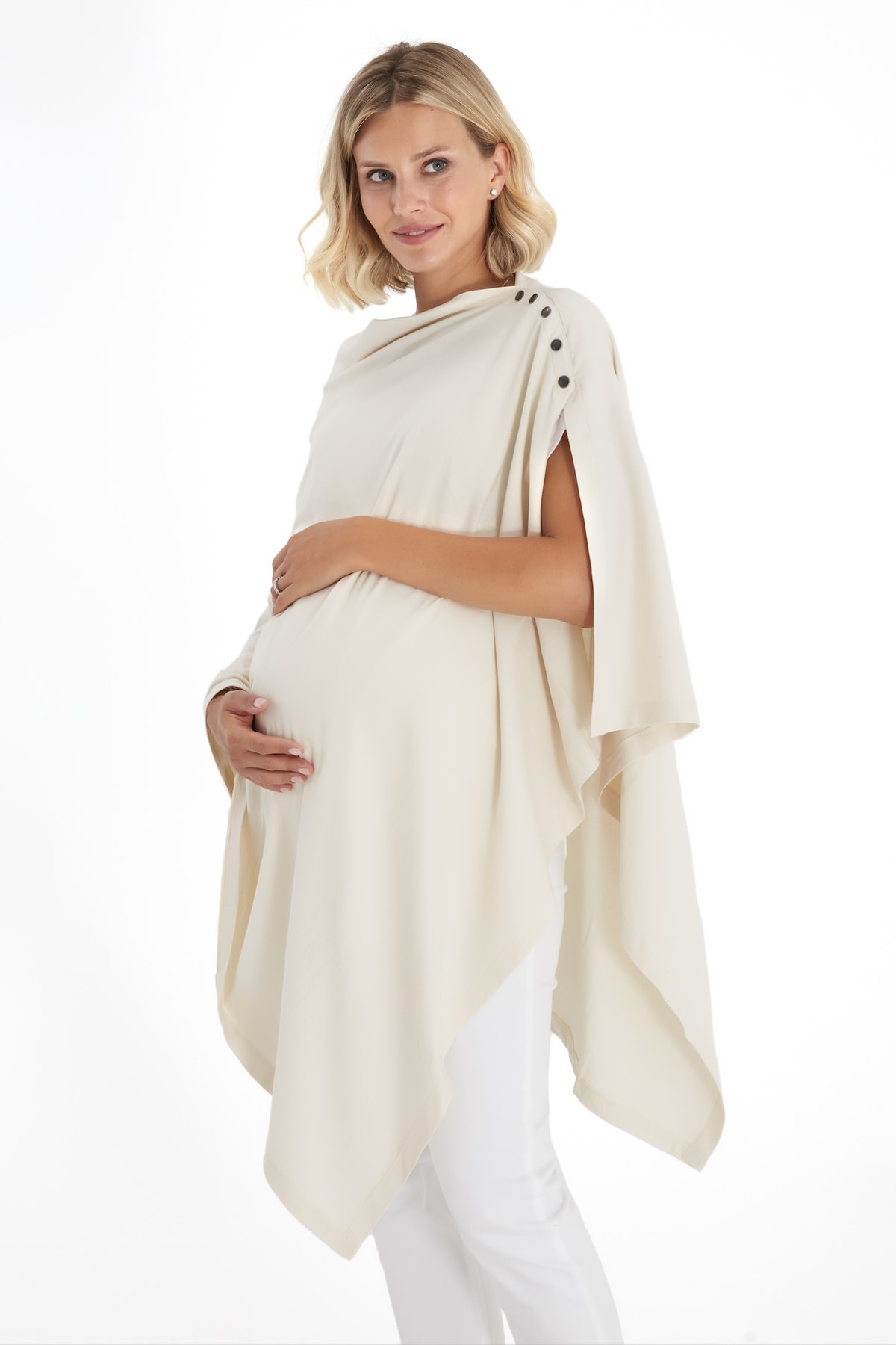 Hamilelik, emzirme ve sonrası dönemlerde rahatlıkla kullanılabilen çok amaçlı pelerin, pamuklu kumaşı sayesinde cildinize nazik bir dokunuş sunar