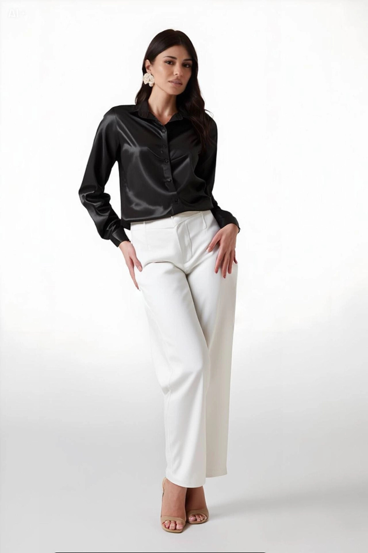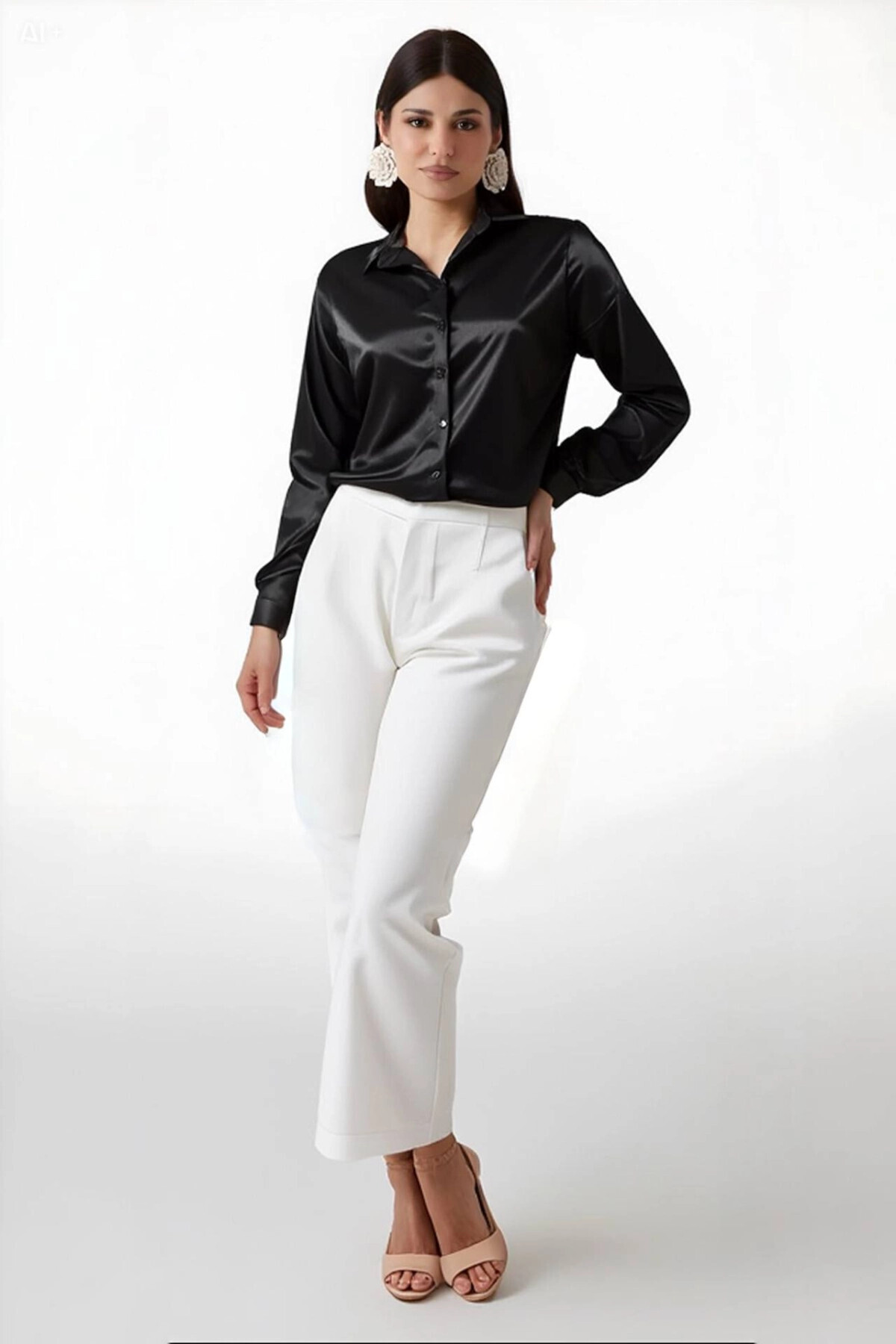 Hafif Dökümlü, Yumuşak Dokulu, Kenarları Oval Kesim, Saten Yüzeyli Gömlek