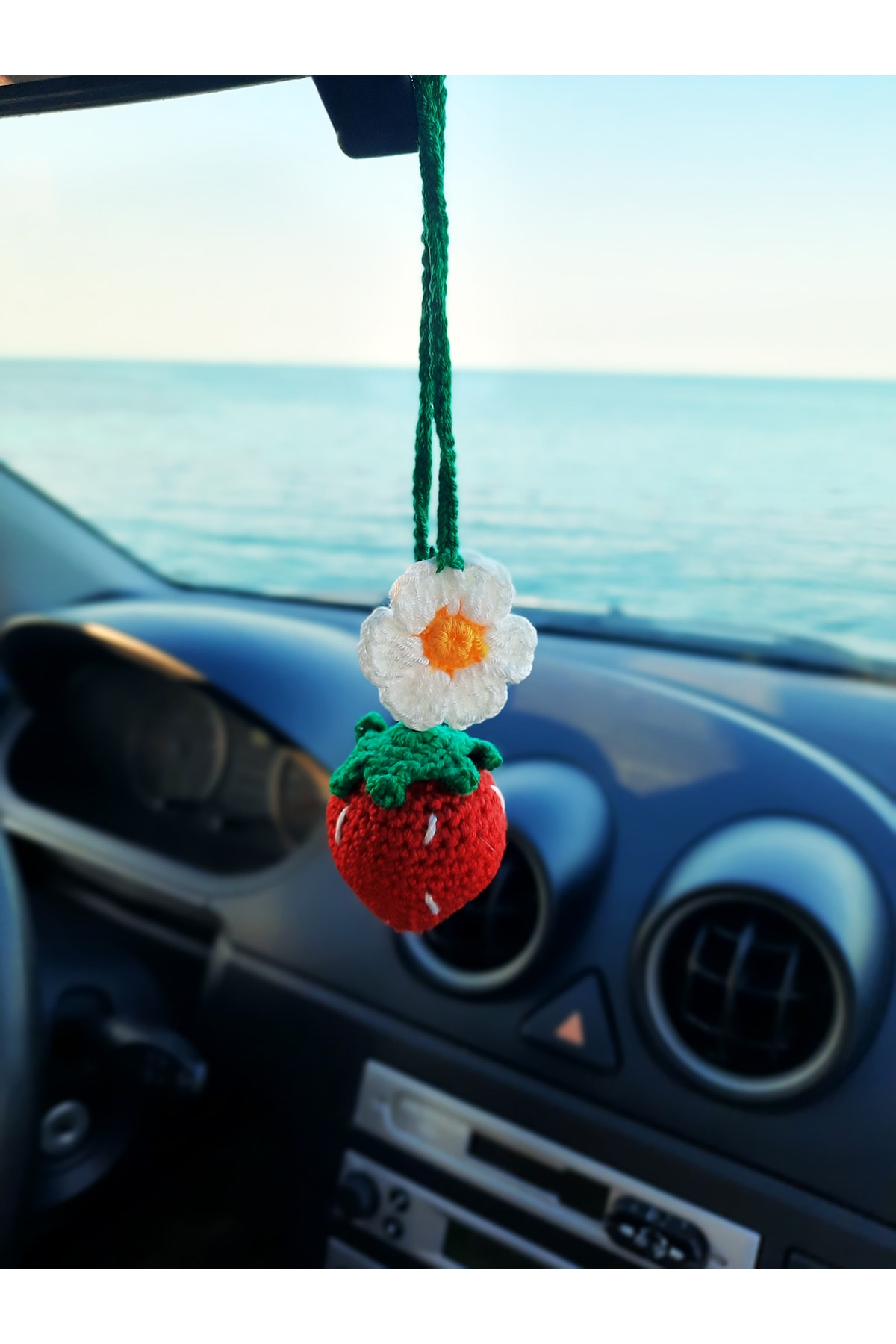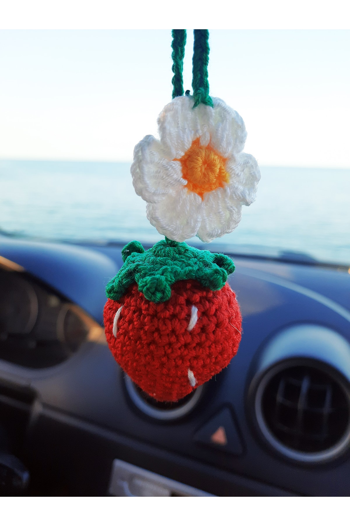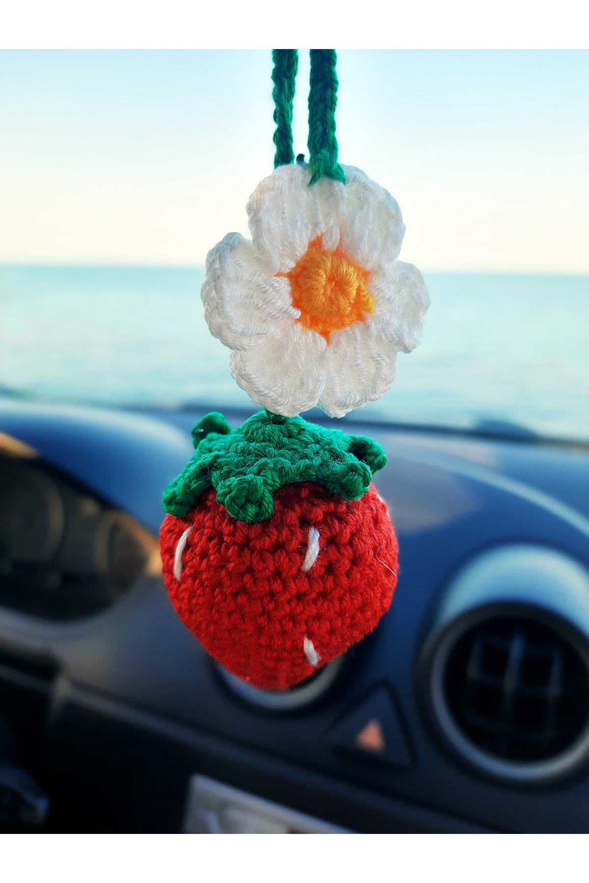 Bu el yapımı sevimli papatya çilek, arabanızın dikiz aynasını mükemmel bir şekilde süsleyecek ve sürüş sırasında size eşlik edecek!