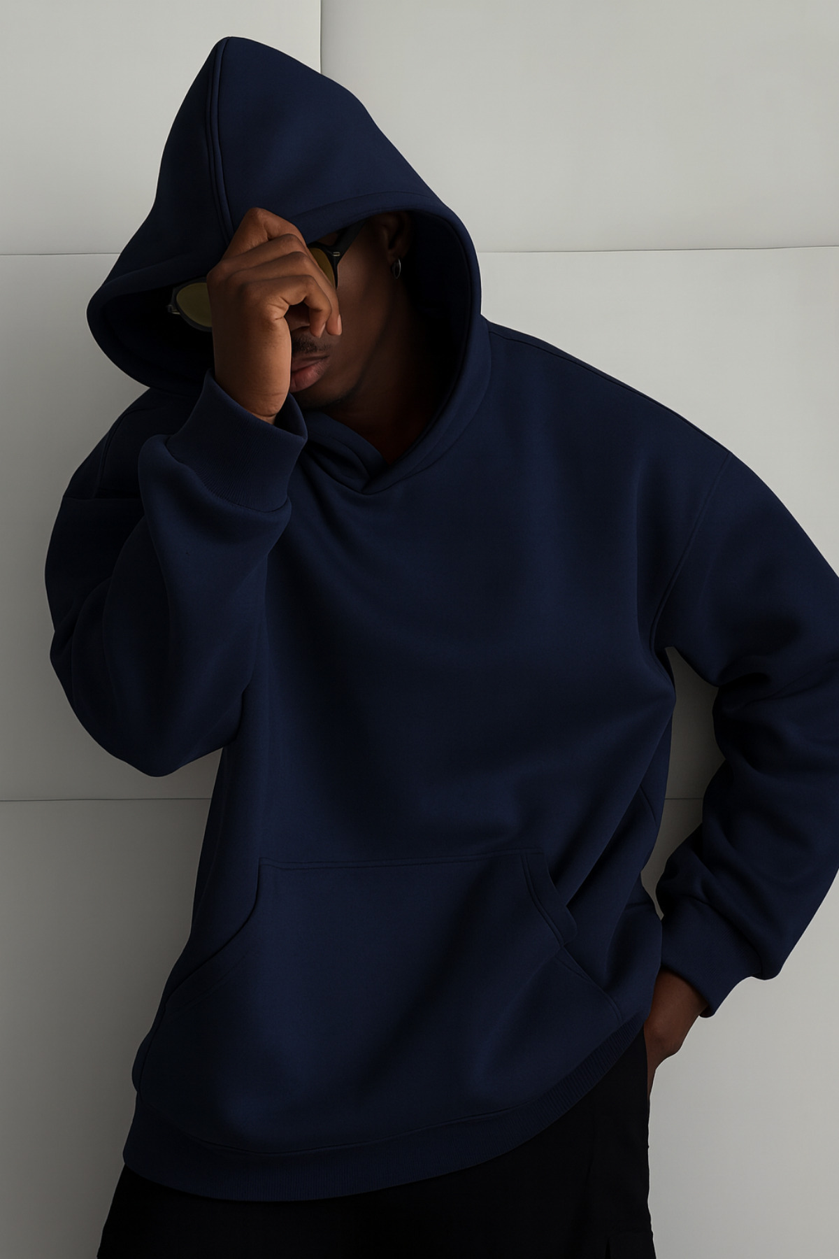 - Rahat kesimi ile günlük kullanım için ideal, bol kalıba sahip siyah unisex hoodie.