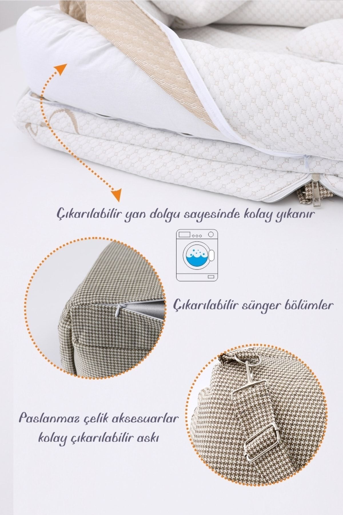 Dış kumaşı ekstra kalın ve dayanıklıdır, iç bölüm bebekler için üretilmiş dokuma yatak kumaşına sahiptir.