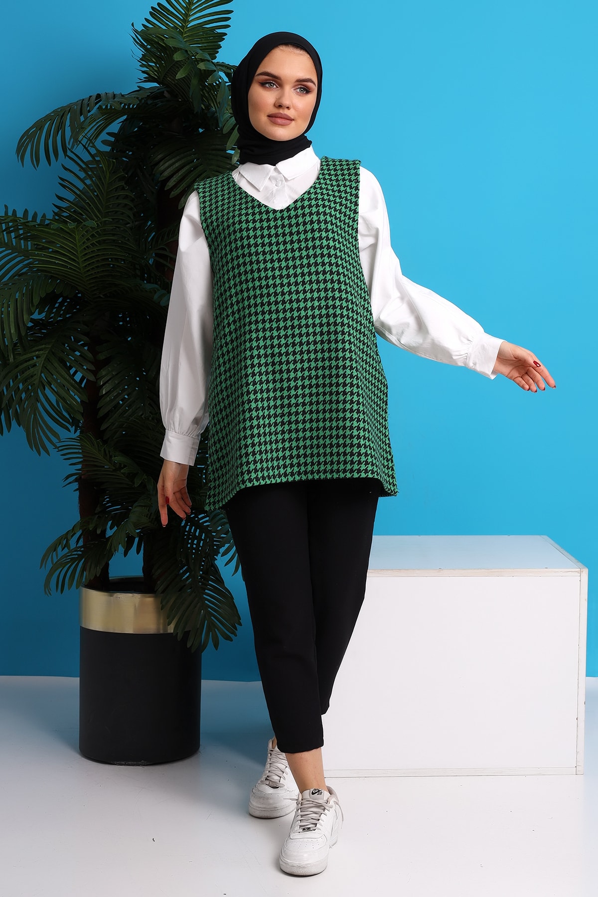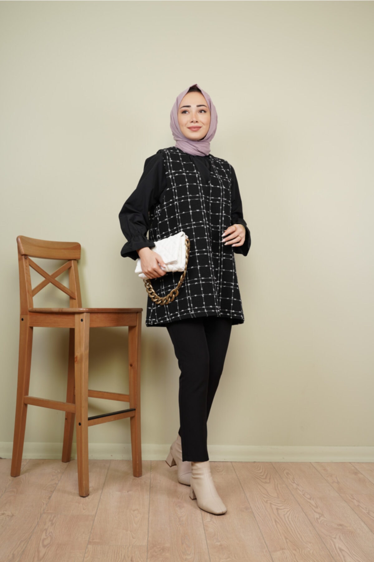 Tesettür giyim koleksiyonunun parçası olarak tesettür modasına uygunluk gösterir.