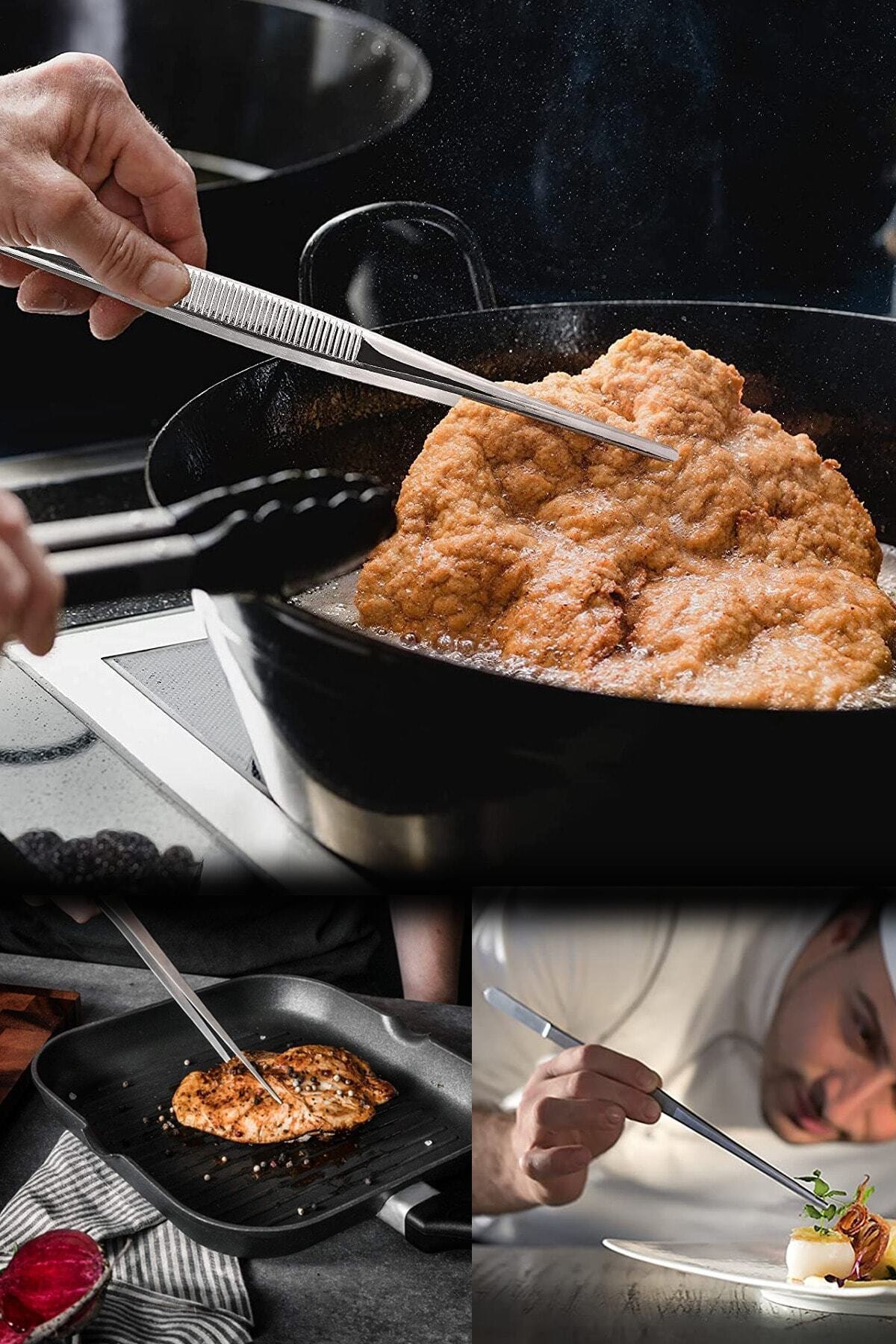 Maşa cımbızı 18/10 paslanmaz çelikten üretilmiştir ve bulaşık makinesinde yıkanabilir. - Kolay bir şekilde kavrayacağınız bu maşa cımbızının şekli ergomonik bir yapıya sahiptir. - 30 cm uzunluğundaki bu cımbızı yüksek ateşe sahip ocak ve mangalda da güvenli bir şekilde kullanabilirsiniz. - Sunumlarınız ve pişirme için vazgeçilmez bir alettir. - Et kızartma için kullanılabileceği gibi pasta süslemede de kullanılabilir. - Restoranlar, büfeler, düğünler, partiler ve daha fazlası için mükemmeldir. - Yemek pişirmek, kızartmak, küçük nesneleri kapmak, eczane amaçlı, saç çekmek, elektrik tamiri, küçük hayvanları beslemek, bir bahçeyi veya akvaryumu temizlemek, bitki bakımı için kullanılabilir. - Sallama çayı alırken, barmenler, içkinize buz koyarken, kokteyl hazırlarken, kuyumcular ve sonsuz alanda kullanım sağlar. - Dayanıklı malzeme : Pas ve korozyona dayanıklı, toksik olmayan, kaplamasız, yüksek kaliteli gıda sınıfı paslanmaz çelikten yapılmıştır. - Ergonomik tasarım: Bu pişirme cımbızı, rahat ergonomik şekle sahiptir. - Çok dayanıklı ve kolay deforme olmaz. - Yiyecekleri ezmeden güvenli bir şekilde kavrar ve ellerinizi ısıdan korur. - Kahvaltı, öğleden sonra çayı, bayram, düğün kutlamaları veya ev, otel ve restorant için günlük kullanım. - Salata, makarna, ızgara, hamur işleri, makarna, haşlanmış yumurta, tost, meyve ve daha fazlası için iyi bir tutuş sağlar.