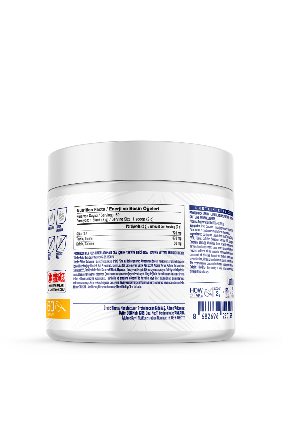 ProteinOCN CLA Plus Limon Aromalı CLA İçeren Takviye Edici Gıda, TEG Onay No: 019051-05.12.2023