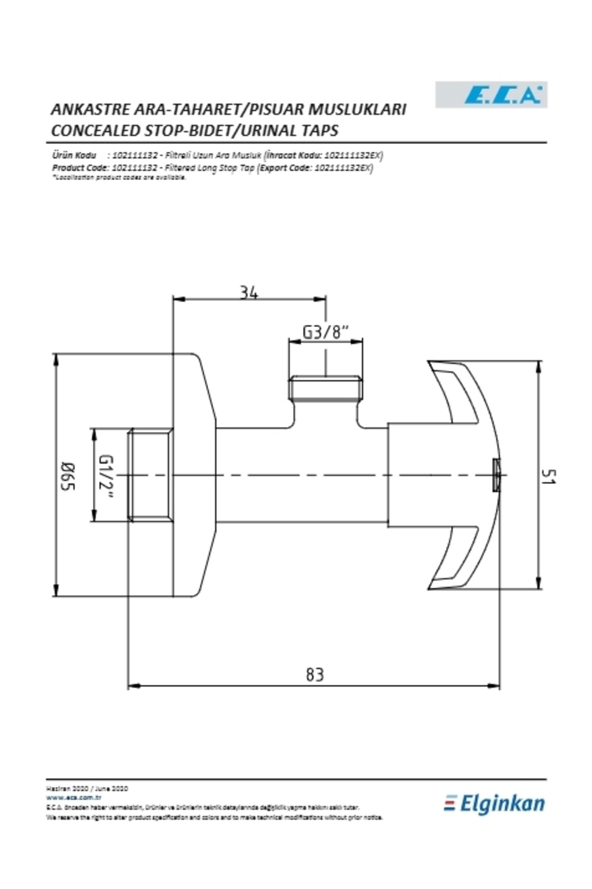 Eca Uzun Filtreli Ara Taharet Musluk Ergonomik tasarım volan Pislik tutucu özel filtre Tesisat bağlantısı G 1/2” dir