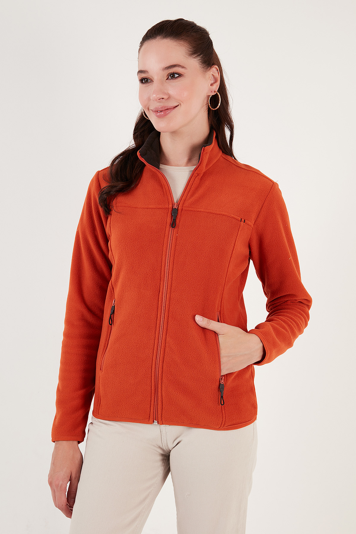 Dik Yaka Fermuarlı Cepli Polar Hırka Kadın Polar 5907002