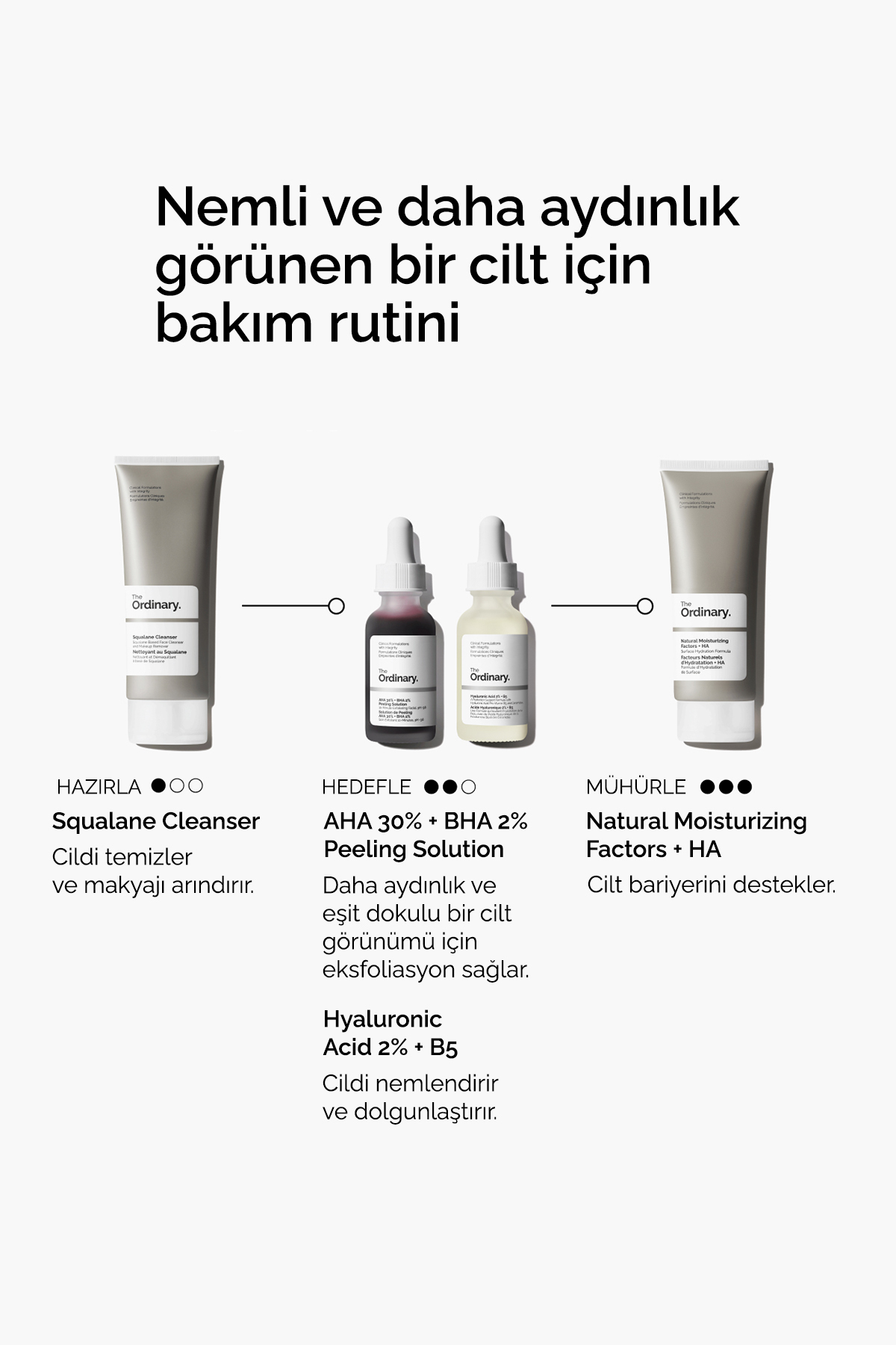 AHA (Alfa-Hidroksi Asitler) ve BHA (Beta-Hidroksi Asitler) içeren formülüyle cildi pürüzsüzleştirmeye, gözenekleri arındırmaya ve cilt tonunu eşitlemeye yardımcı olan, evde eksfoliasyon bakımı sunan bir peeling solüsyonudur.