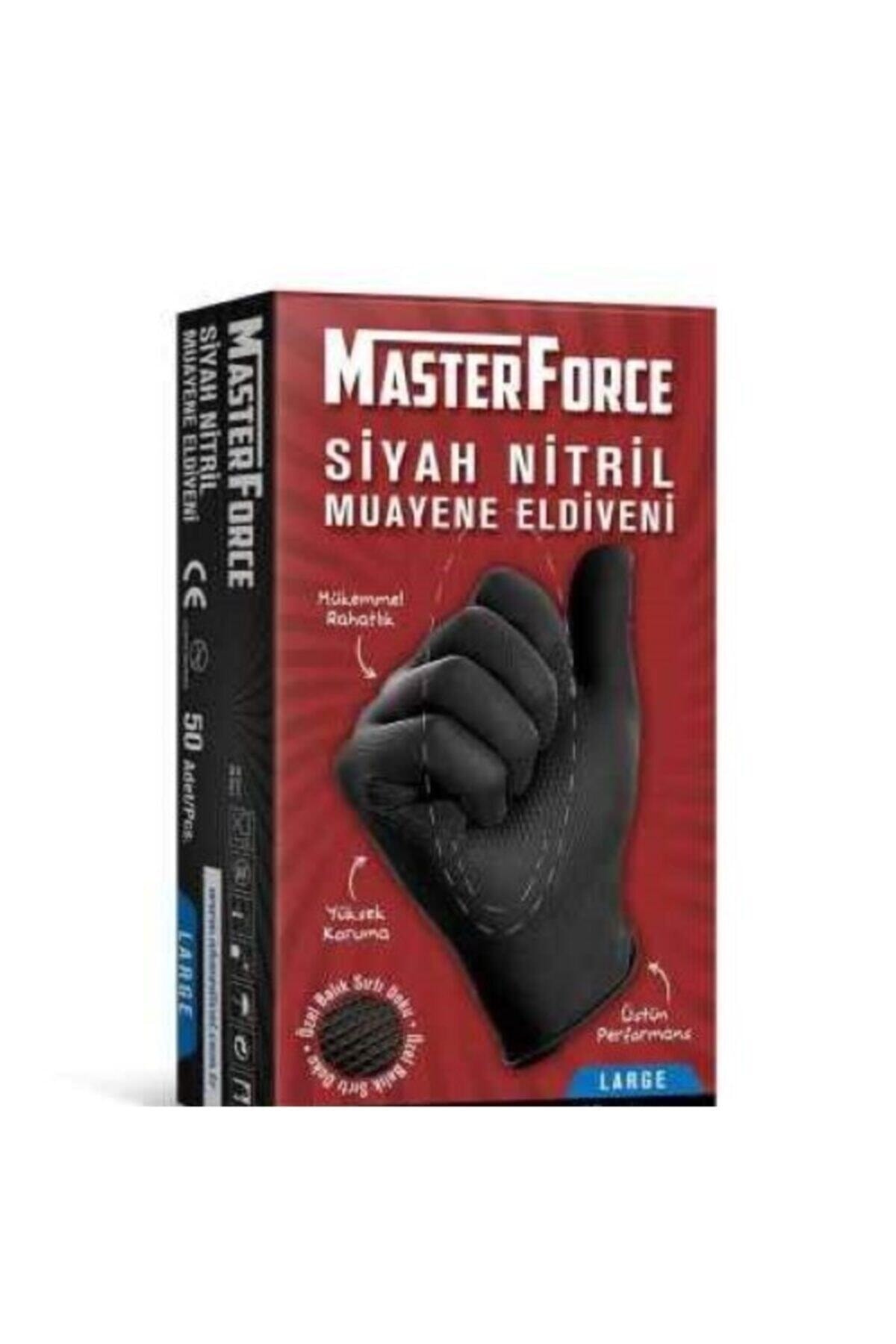 Master Force Siyah Nitril Eldiven 50'li Paket L (Large) beden Avuç içi Balıksırtı Desenli - kalın ve Gramajlı Üründür. Bir pakette toplam 50 adet eldiven vardır. Nitril malzemeden üretilmiş