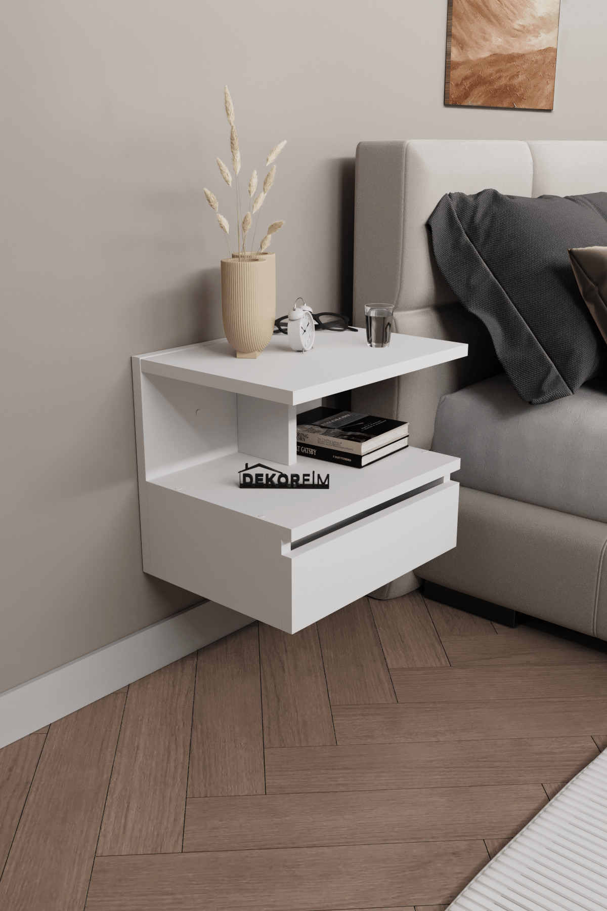 Flora komodin tek çekmecelidir ve çekmece üzerinde bir adet raf bulunmaktadır.
