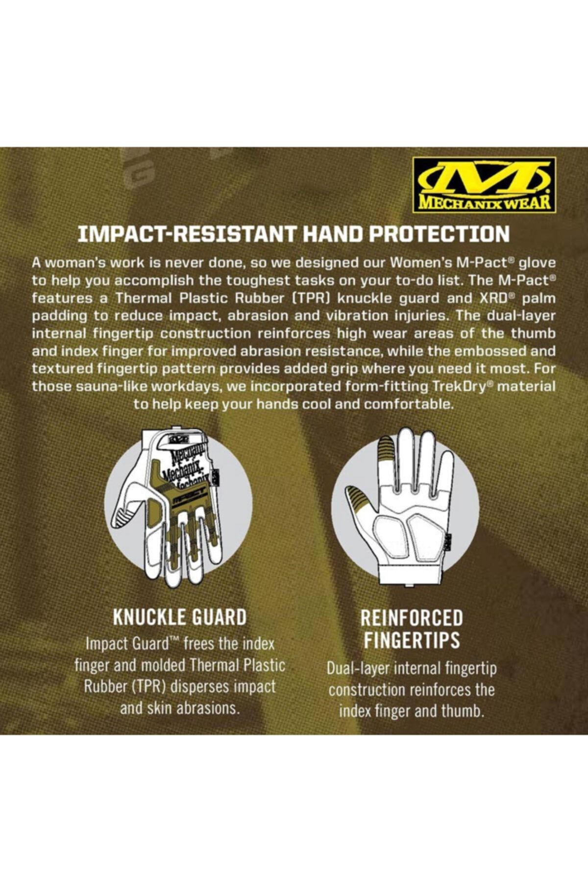 M-Pact, çalışan elleri kör kuvvet etkisini emen ve EN 13594 darbe standardını karşılayan Termoplastik Kauçuk (TPR) mafsal korumasıyla korur.