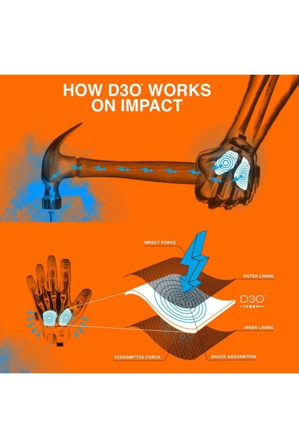 8. D3O® avuç içi dolgusu, yüksek etkili enerjiyi avuç içinde emer ve dağıtır.