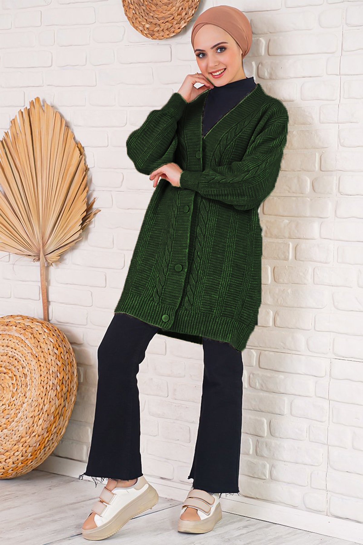Ürün Içerigi% 100 AkrilikÜrün özellikleriSaç Örgü Desen Dügmeli Triko HirkaModel BilgileriBedeni : 38Ürün Boyu: 72 cmKol Boyu: 50 cmManken Ölçüsü : Boy:176 Gögüs:90 Bel:63 Basen:94Genel Yikama ve Kullanma Talimatlari• El isi ve boncuklu ürünler hassas programda tersten yikanmalidir• Baskili ürünler zamanla dökülebilir• Yikamada ürünü bozmamak için 30 C'yi asmayiniz• Ürünü yikarken yikama talimatina uygun olarak yikayiniz• Renkli ürünlerde uygun deterjan kullaniniz• Denim olan ürünler ve koyu renkli ürünler açik renkli diger ürünler ile yikanirken boyayabilir.