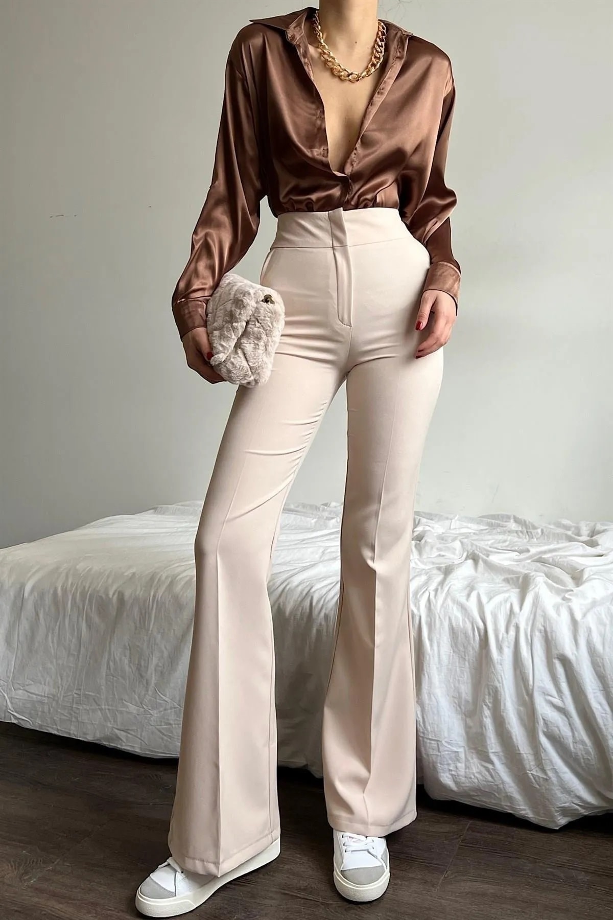 Geniş paça tasarımı ile modern siluetinizi vurgular ve şık bir görünüm kazandırır.