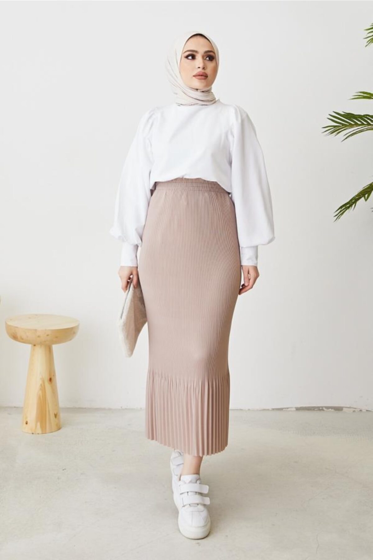 Tesettür giyim koleksiyonunun modern çizgilerini yansıtan tasarım, günlük kullanım için uygundur