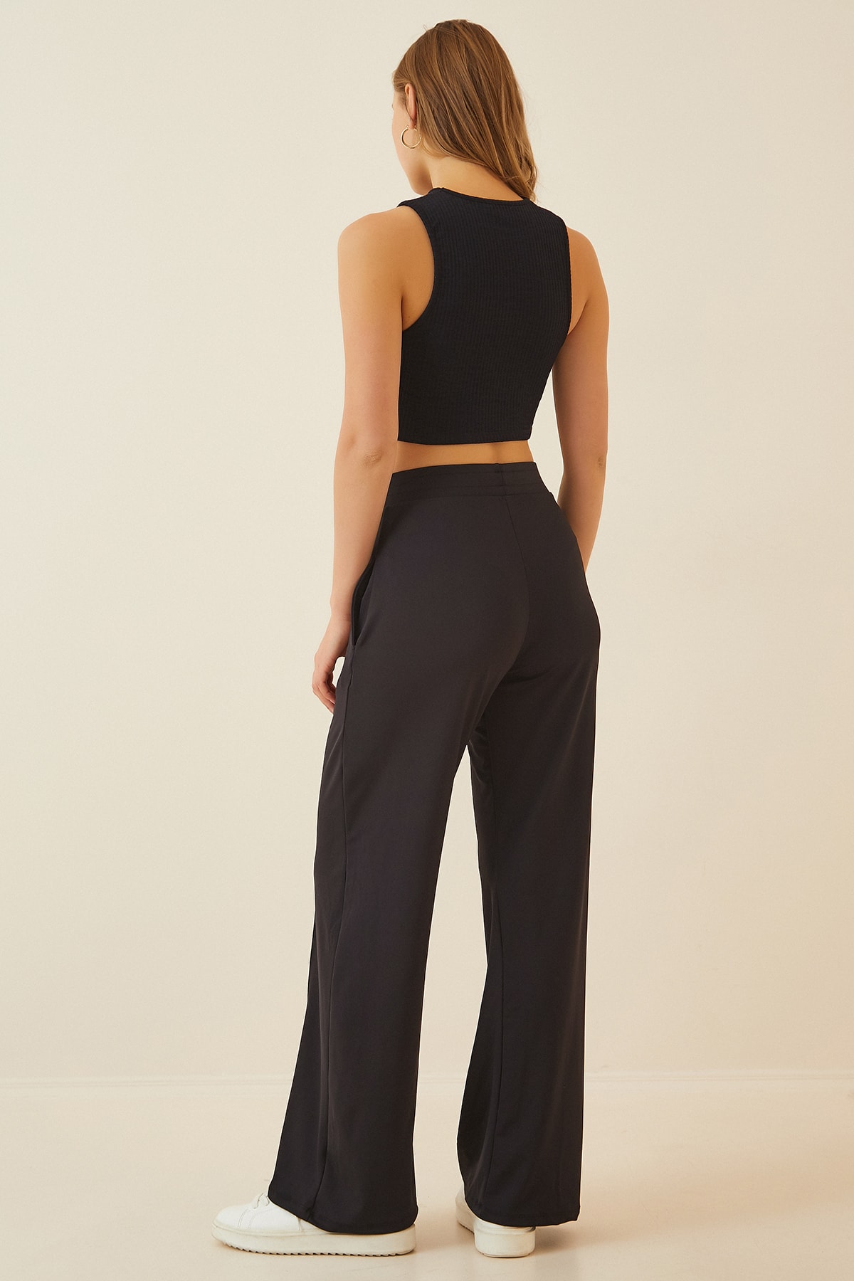 Geniş paça tasarımı modern ve rahat bir siluet oluştururken, hareket özgürlüğünüzü kısıtlamaz