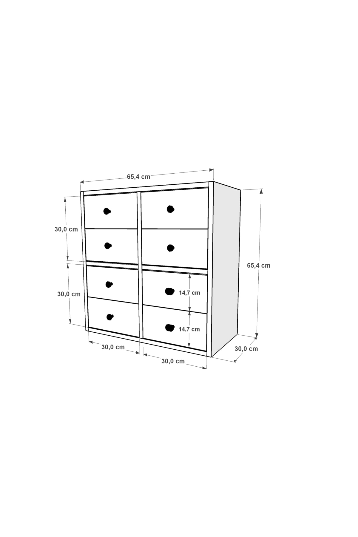 *ÜRÜN ÖLÇÜLERİ -Genişlik: 65,4 cm -Derinlik: 30 cm -Yükseklik: 65,4 cm -Renk : Beyaz -Malzeme : Suntalam *ÜRÜN İÇERİĞİ -Çevreye ve Sağlığa Zararsız Kanserojen madde içermeyen E1 Kalite standardında 18 MM suntalam kullanılmaktadır.