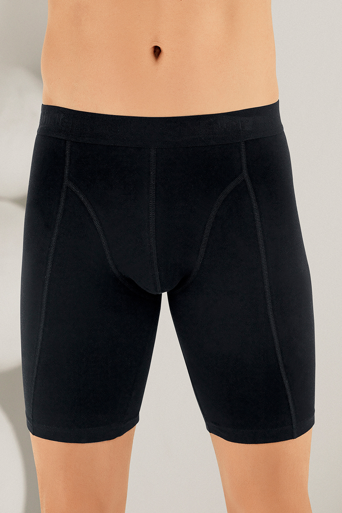 %95 pamuk ve %5 elastan içeriğiyle üretilen Likralı erkek siyah uzun boxer, cildinize nefes aldıran ve esnek bir yapı sunar