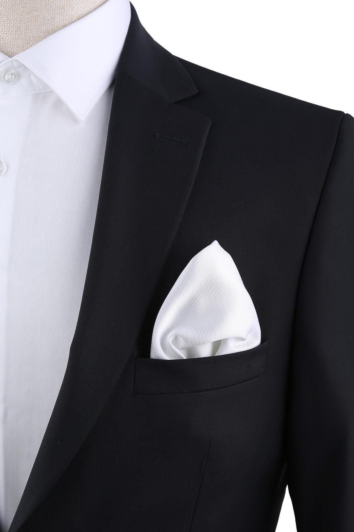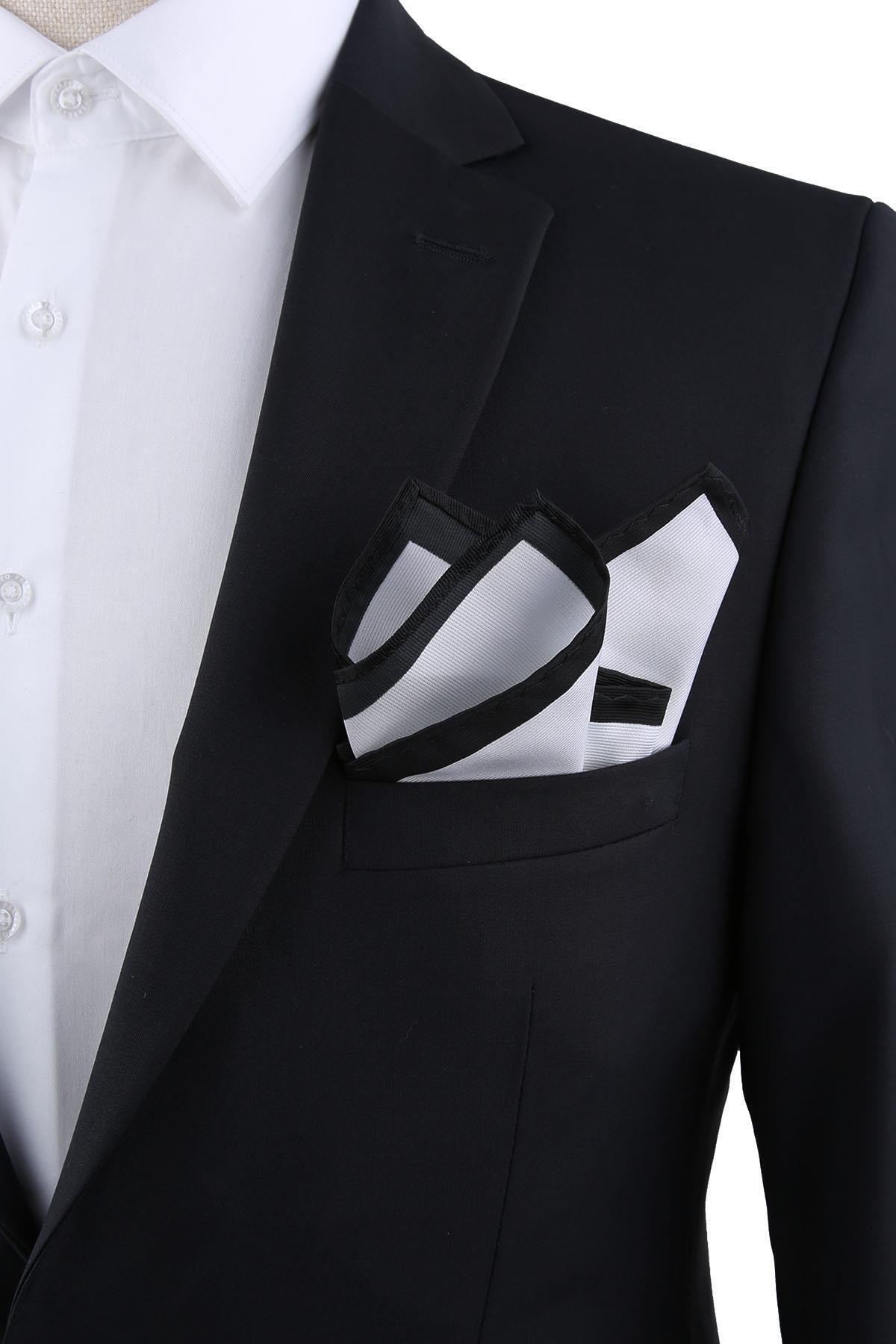 Renkli desenleriyle dikkat çeken siyah detaylı mikrofiber düz beyaz erkek cep mendili, şıklığınızı tamamlar