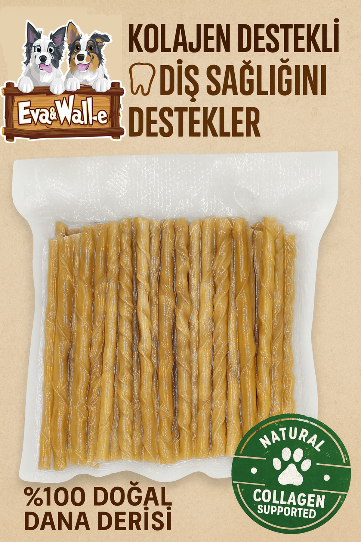 %100 dana sığır iç derisinden üretilmiş olan bu burgu çubuklar, yüksek kolajen değeri ile sadece çiğneme değil, eklem ve deri sağlığı açısından da doğal bir destek sunar.