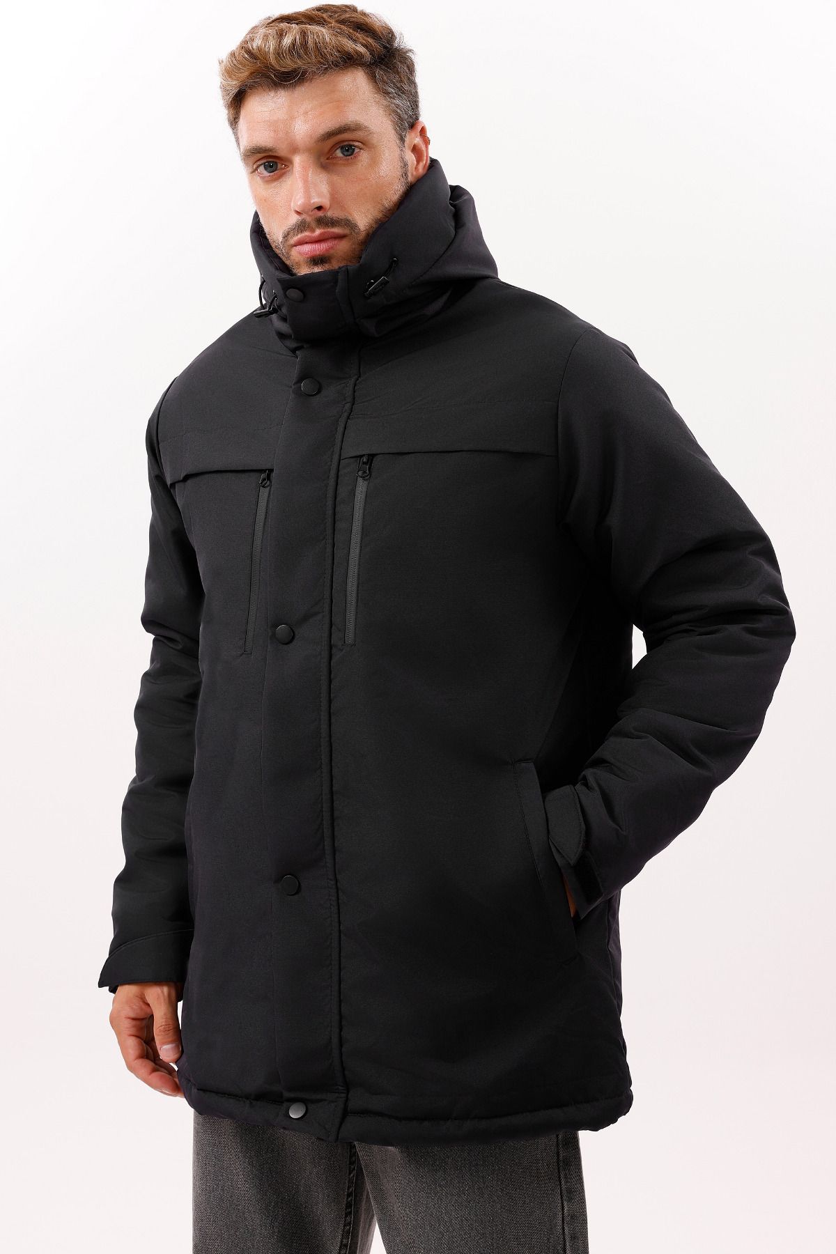 - Kapüşonlu yaka tipi başınızı soğuktan korurken stil sahibi bir görünüm kazandırır.
