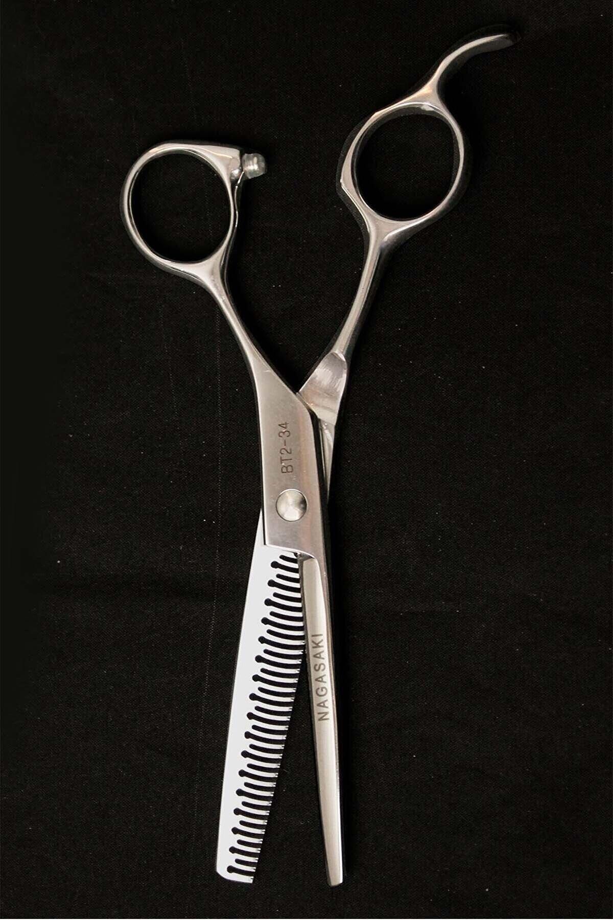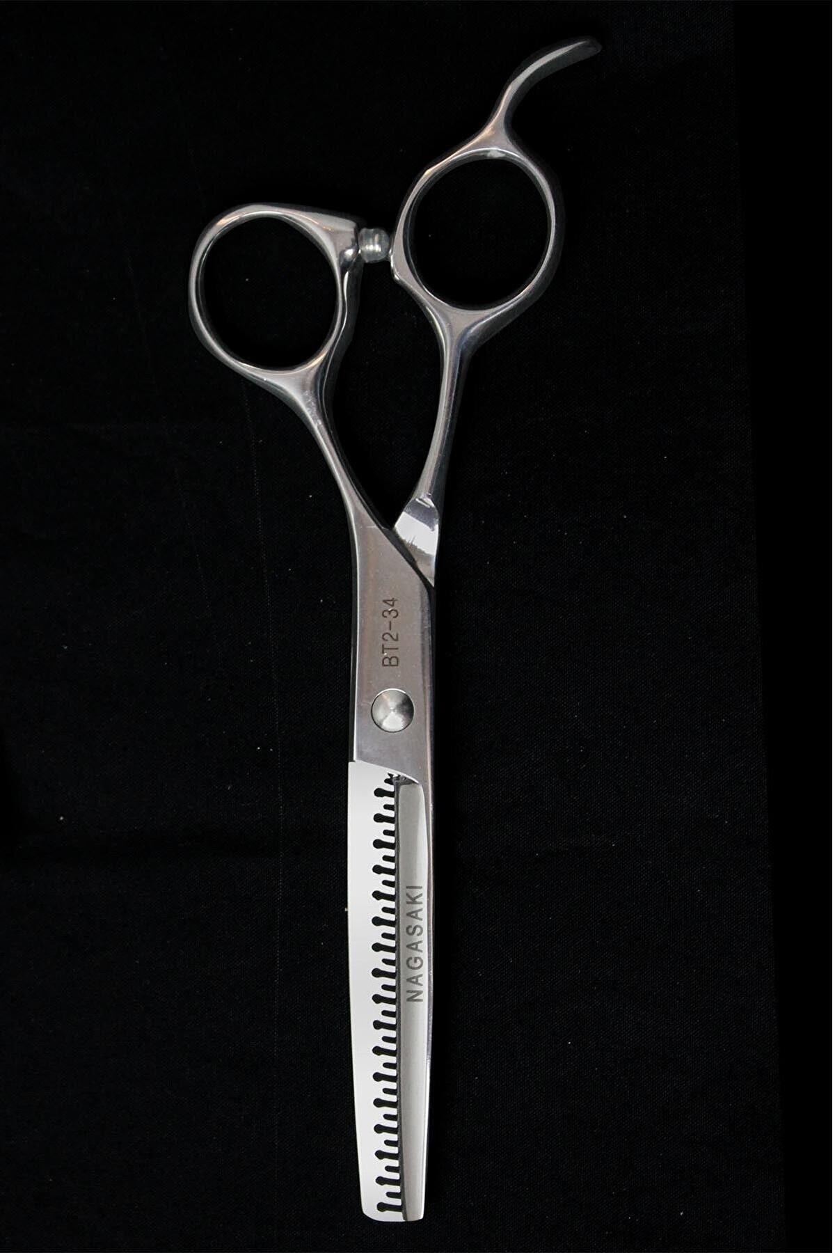Nagasaki profesyonel berber, kuaför efile (ara) makasları, saçları kolayca eşit şekilde düzeltmek için hassas inceltme bıçaklarına sahip.