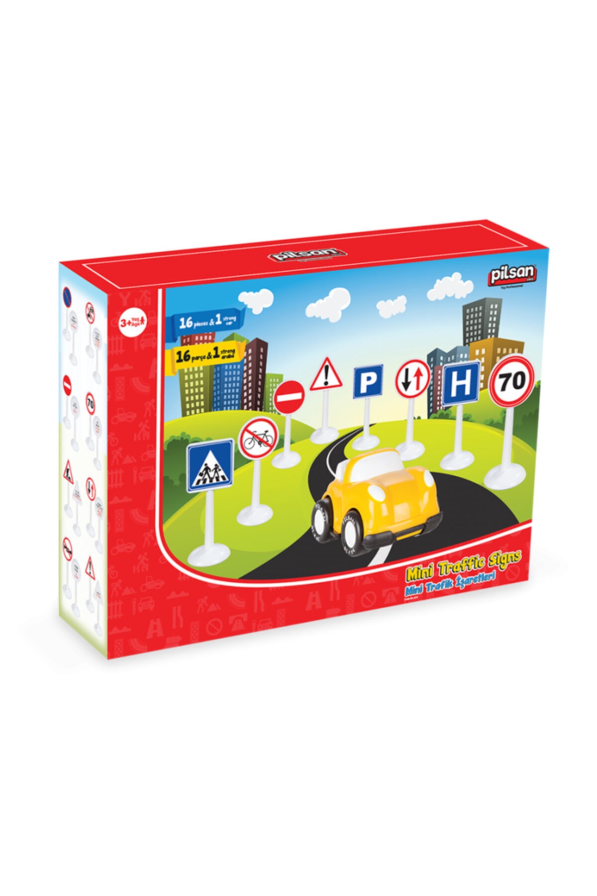 Pilsan Mini Trafik İşaretleri Seti 17 Parça 1 Araba+16 Trafik İşareti En Önemli 16 Trafik İşareti ve Açıklaması + 1 Kırılmaz Araba Kullanım yaşı 36+ ay