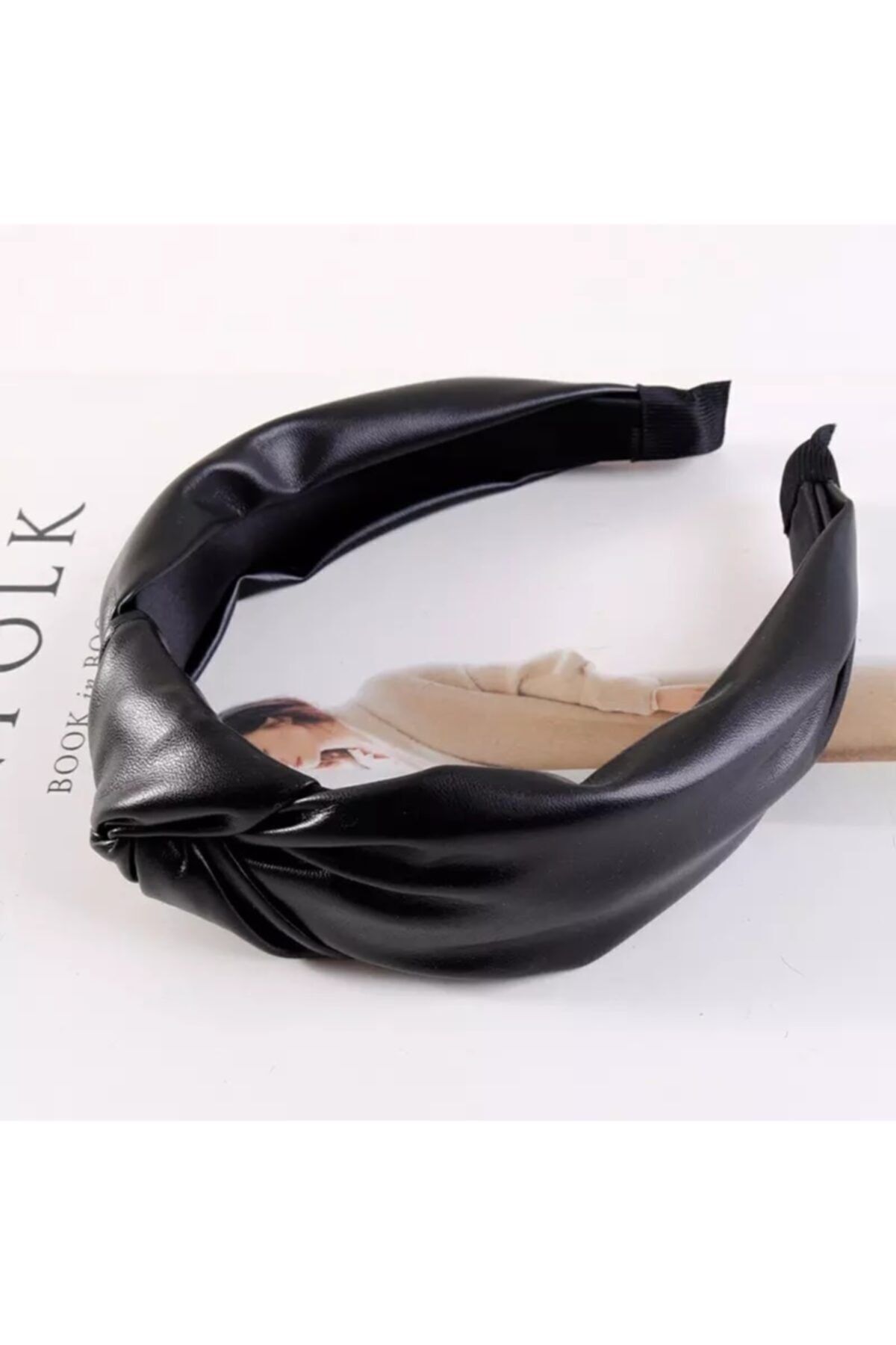 Suni deri görünümüyle şıklığı ve zarafeti bir arada sunan kahverengi düğüm taç saç bandı, her türlü özel gününüzde stilinizi tamamlar