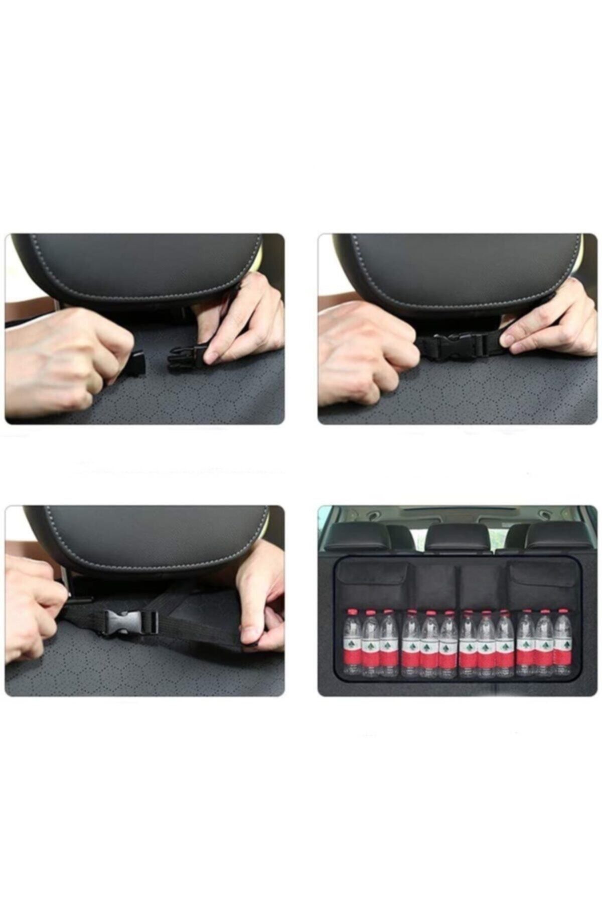 Araba bagajları için eşya çantası ürününde arka tarafında yapışmasını sağlayan cırtlar sayesinde aracınızın bagajına resimde olduğu gibi sabitleyebilirsiniz aynı zamanda 3 adet klipsleri vardır bunları araç koltuk başlarına sabitlemeniz amacı ile üretilmiştir.