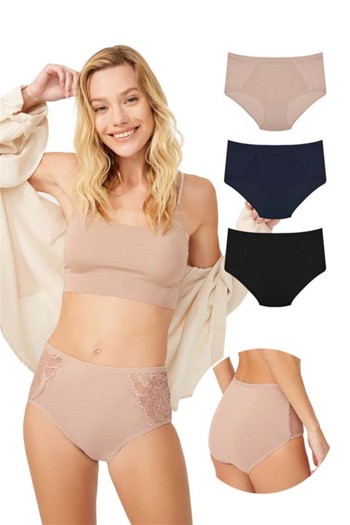 Dantel Detaylı Klasik Pamuklu Bato Külot 3'lü Paket Paket içerisinde 3 adet Siyah renk ürün bulunmaktadır.