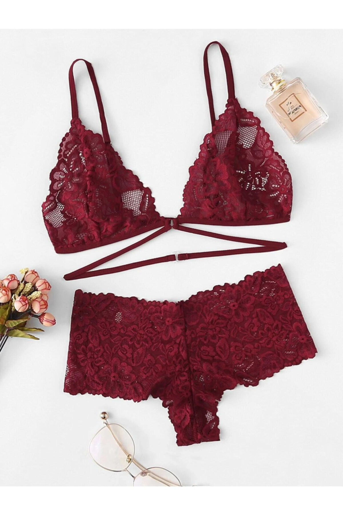 Dantel detayları ile zenginleştirilmiş tasarım, iç giyimde sofistike bir stil yaratır