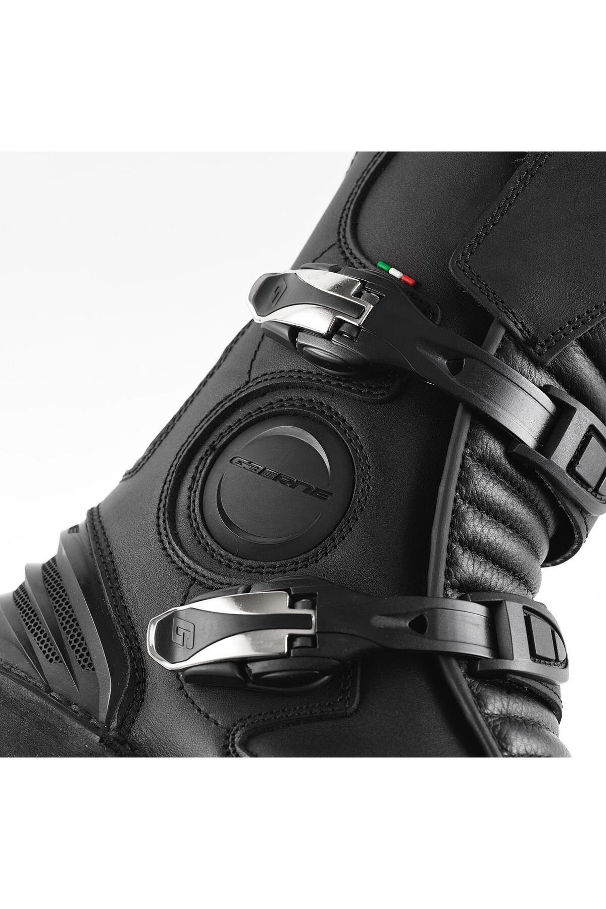 G-Midland Gore-Tex Gaerne’nin uzun turlar ve off-road kullanımı için geliştirdiği en yeni ürünü Tüm sezon kullanıcılar için en doğru tercih %100 su geçirmez gore-tex ve deri yapı ayaklarınızın sıcak ve kuru kalmasını sağlar Ayarlanabilir alüminyum çift kapama mandalı Boydan boya velcro bağlantı sabitleme sistemi %100 İtalyan el işçiliği Kaymayı engelleyici taban yapısı