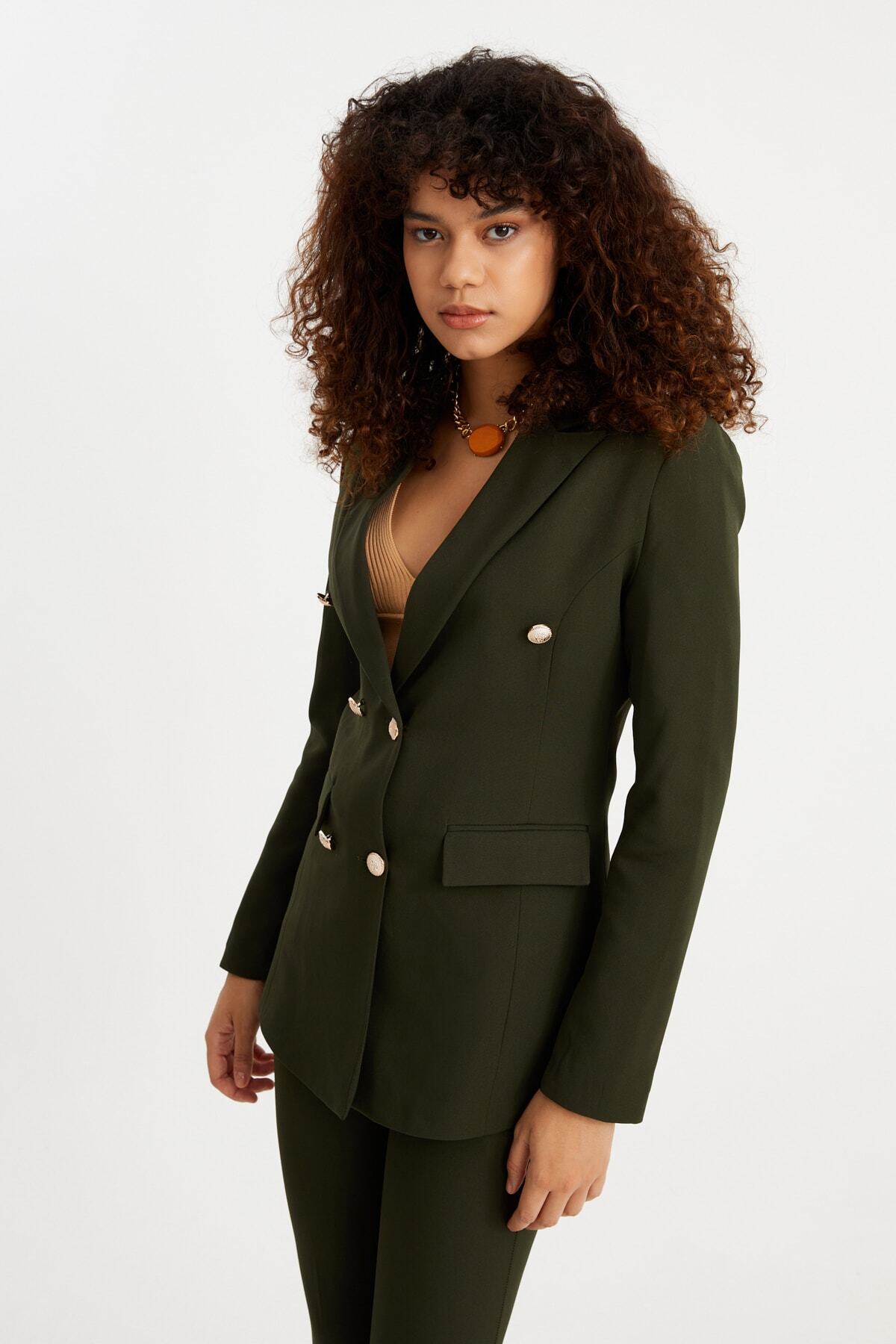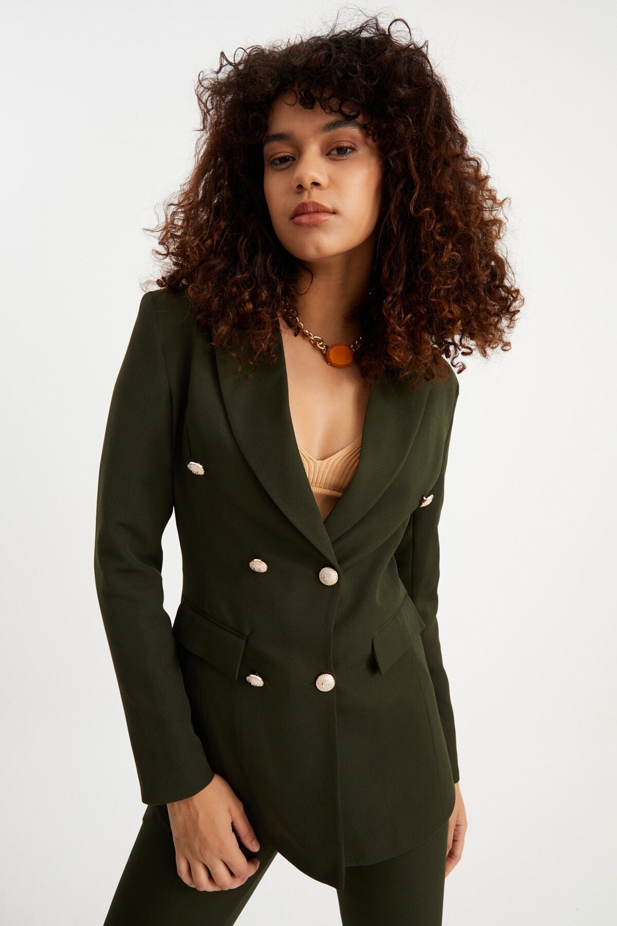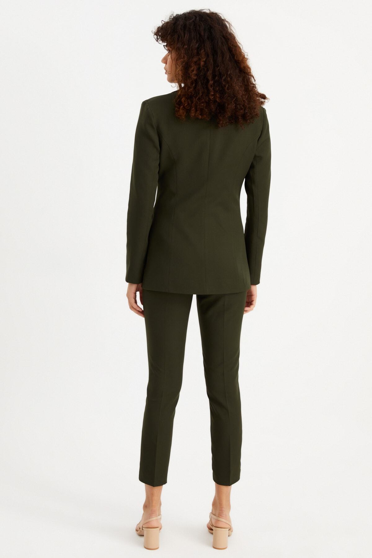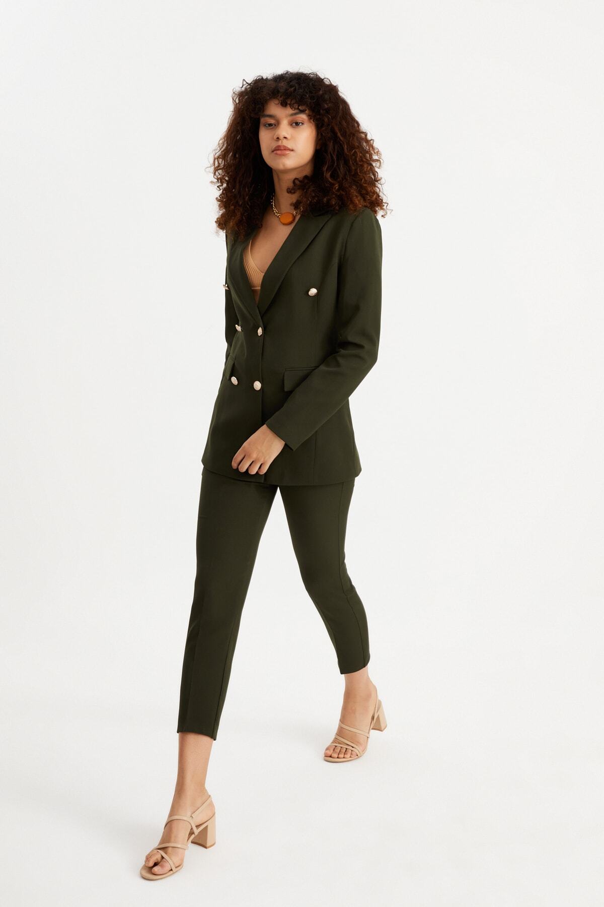 Ürünümüz %90 pamuk, %8 polyester, %2 likra içeren, doğal, hava alabilen, pürüzsüz atlas kumaştan imal edilmiştir. Özel günlerinizde ve işyerinizde beğenerek giyeceğiniz, gözleri üzerinize çevirecek bir takım elbisedir. Hem spor hem klasik kullanabileceğiniz tarz bir üründür. Manken üzerinde ürün bedenimiz 36/S bedendir. Manken ölçüleri boy