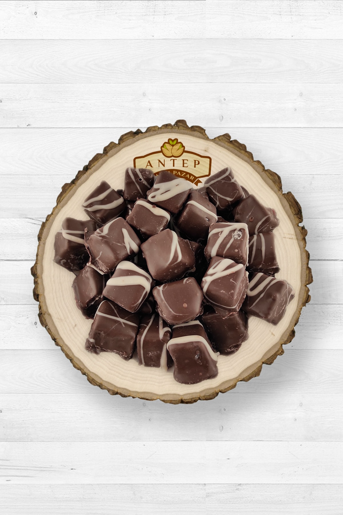 Bitter Çikolata Kaplı Kayısı Lokum içerisinde %83 Kayısı Marmelatı ve %17 Antep Fıstığı Ezmesi bulunmaktadır.