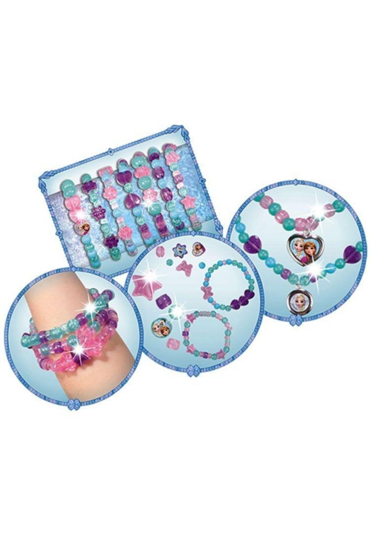 Çocukların hayal dünyasını genişleten Karlar Ülkesi Elsa çantalı boncuk takı seti, miniklerin yaratıcılığını geliştirmek için ideal bir oyuncak
