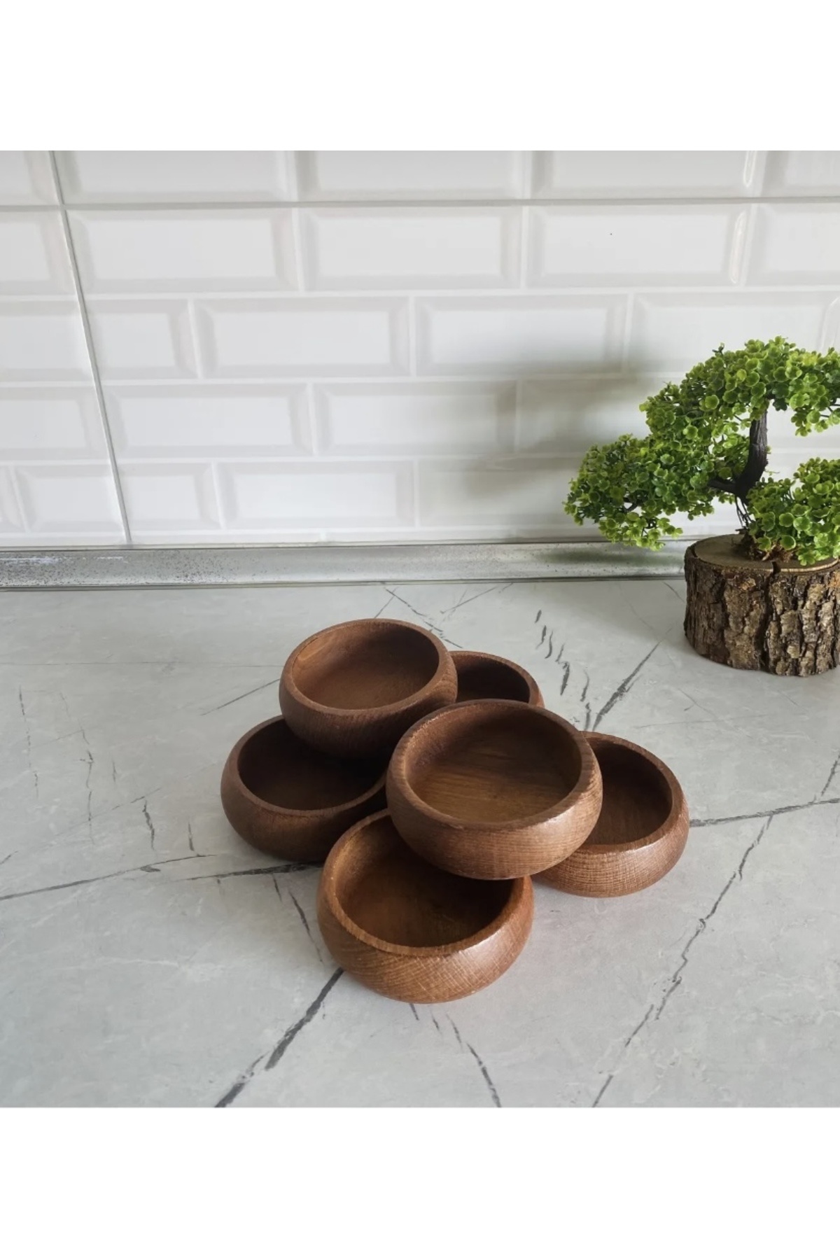 - 9 cm çapında 6 adet kahverengi renkteki bu çerezlikler, mutfak dekorasyonunuza şık bir dokunuş ekler.