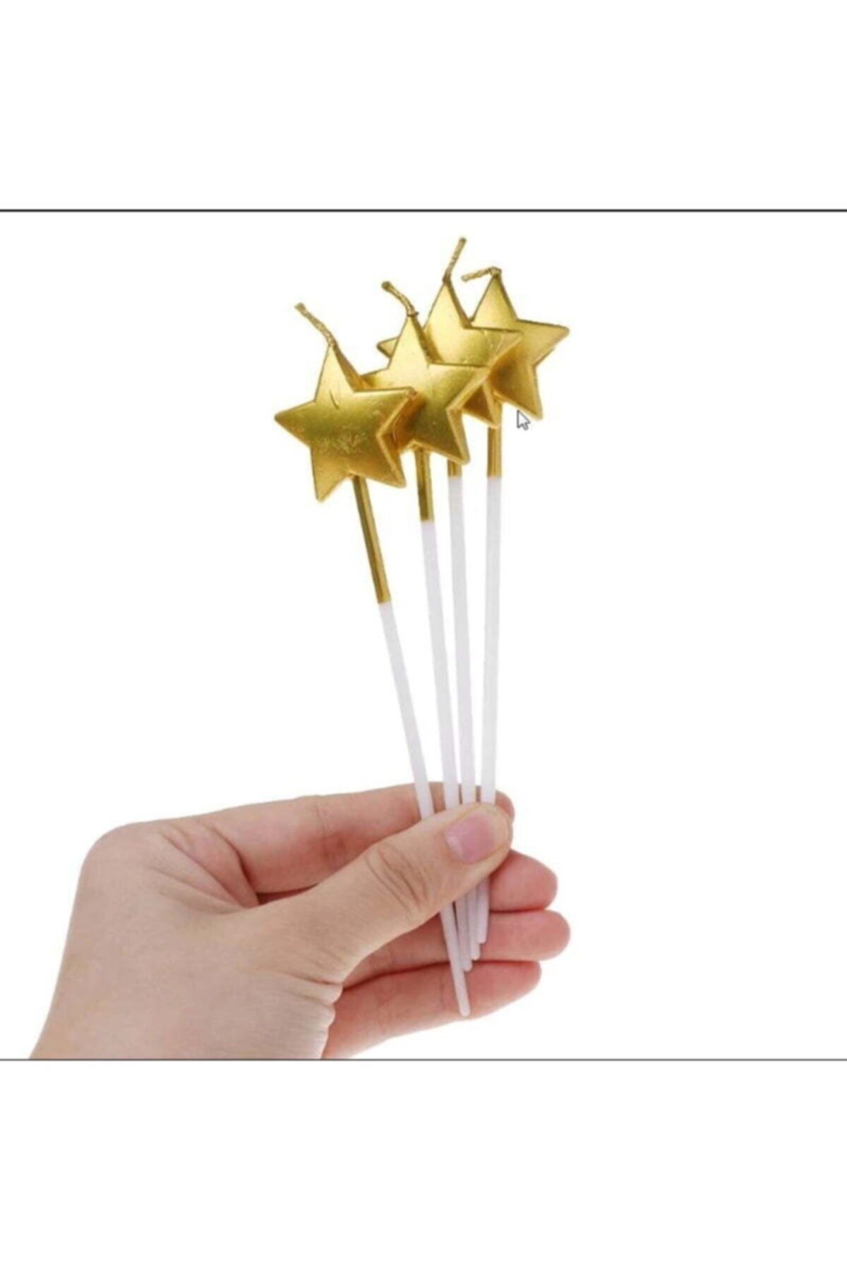 Gold Yıldızli Mum 4'lü 4 adet çubuk üzerine takılı parti pasta mumu.Ebat Bilgileri :En:3 cm Boy:13 cm Paket İçi Miktarı :4 Adet