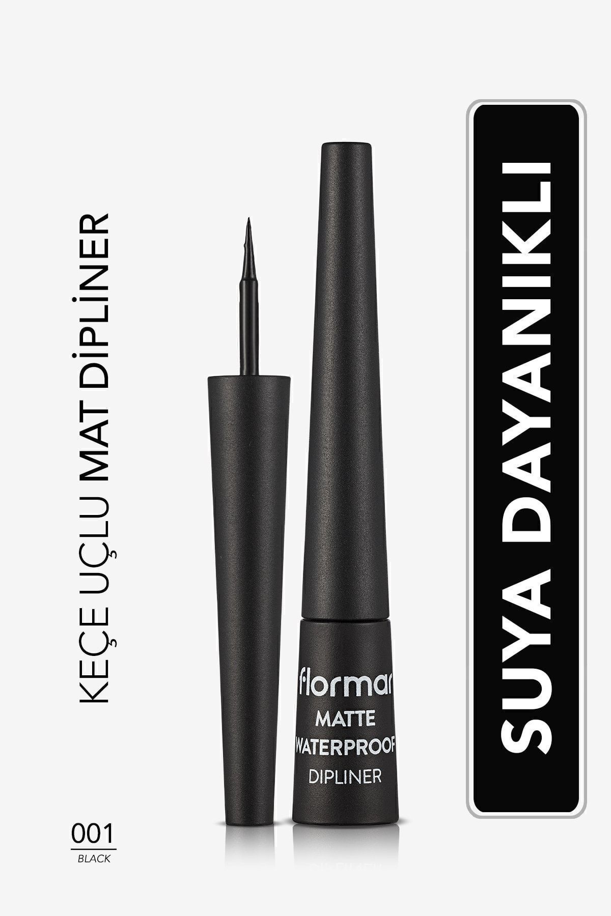 Flormar Suya Dayanıklı Mat Dipliner (Siyah) 001 Black, siyah rengi ve mat bitişiyle bakışlara anlam kazandıran ve kirpik çizgisini belirginleştiren bir göz makyajı ürünüdür.