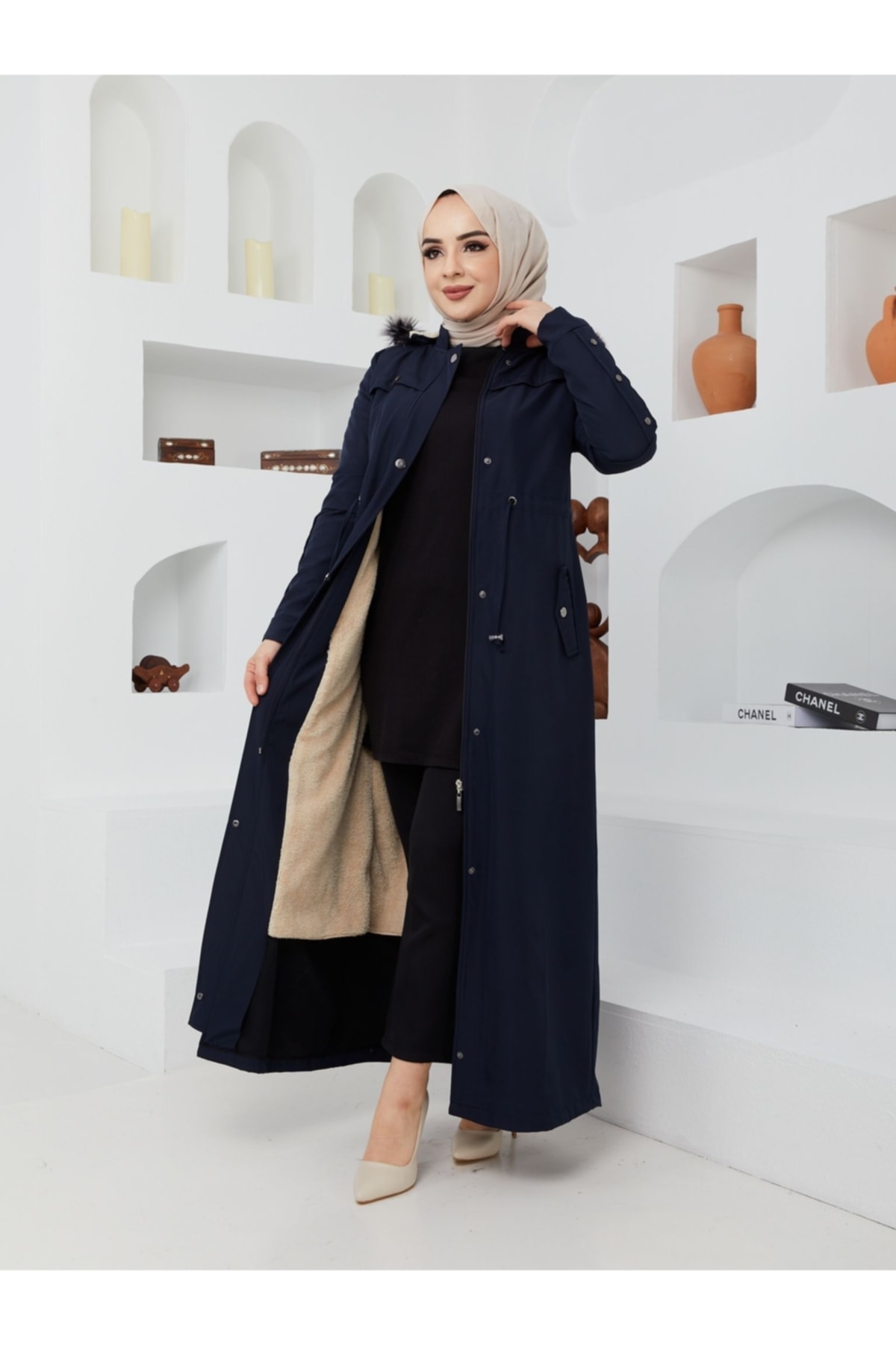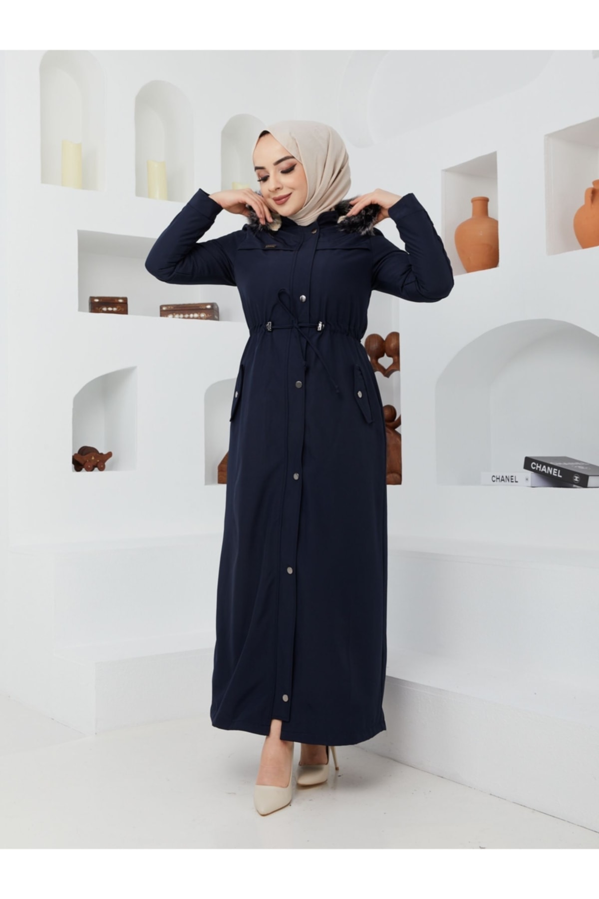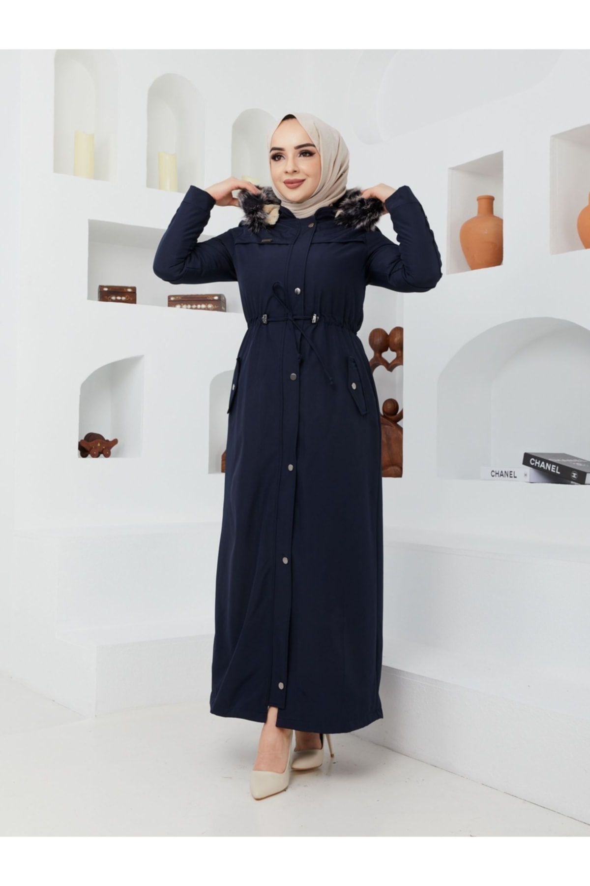 Trend tasarımıyla dikkat çeken bu uzun tesettür kaban, modern ve şık görünümüyle her ortamda fark edilmenizi sağlar.