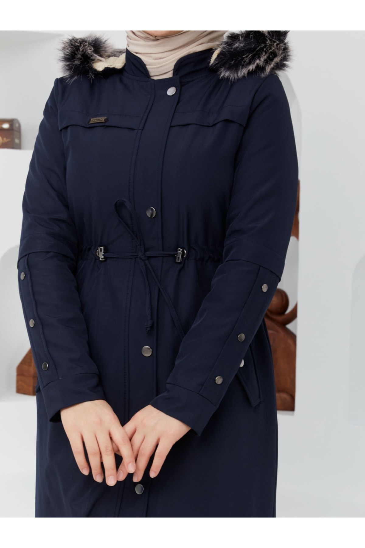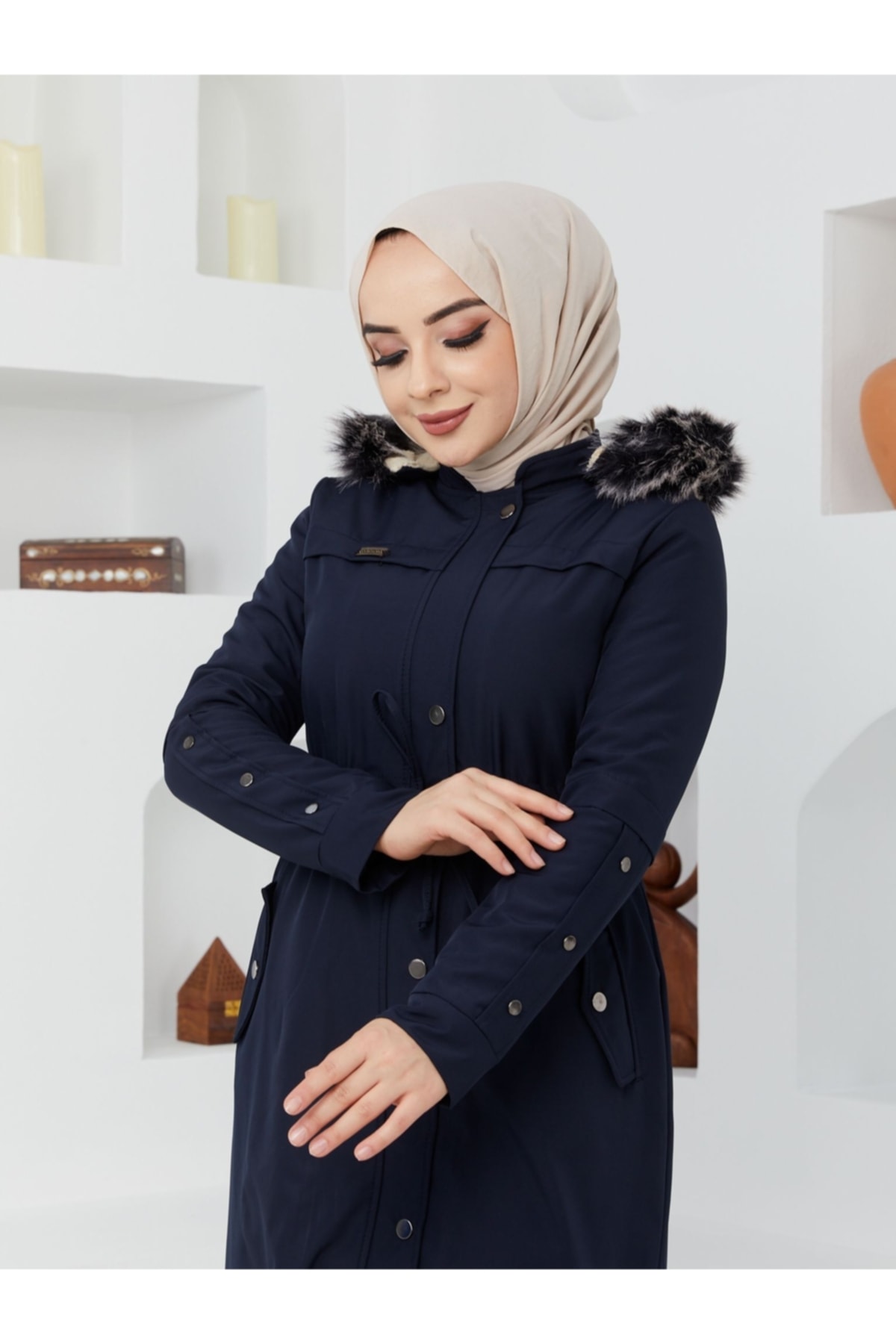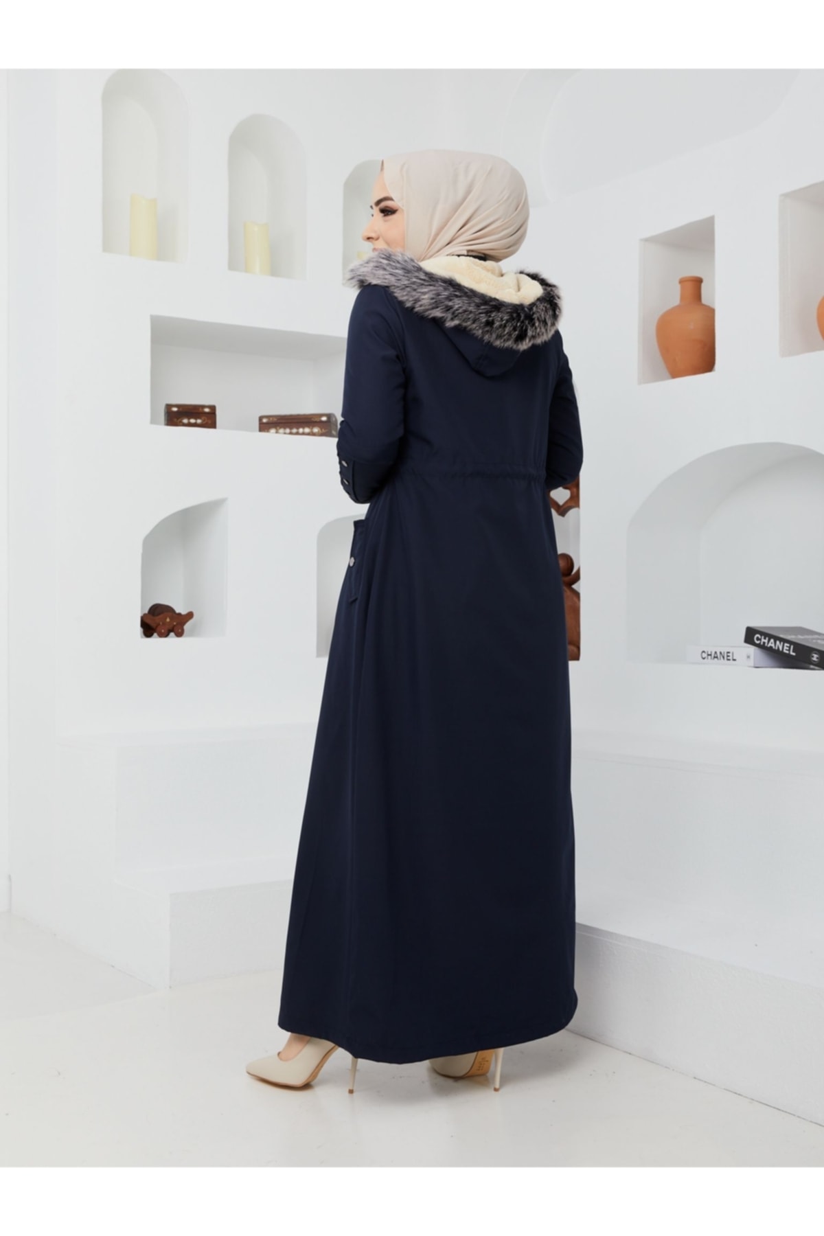 Trend tasarımıyla dikkat çeken bu uzun tesettür kaban, modern ve şık görünümüyle her ortamda fark edilmenizi sağlar.