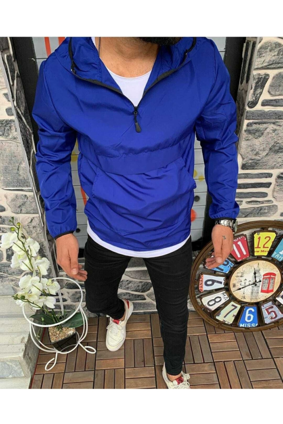 Unisex Mavi Yağmurluk Ruzgarlık Mont