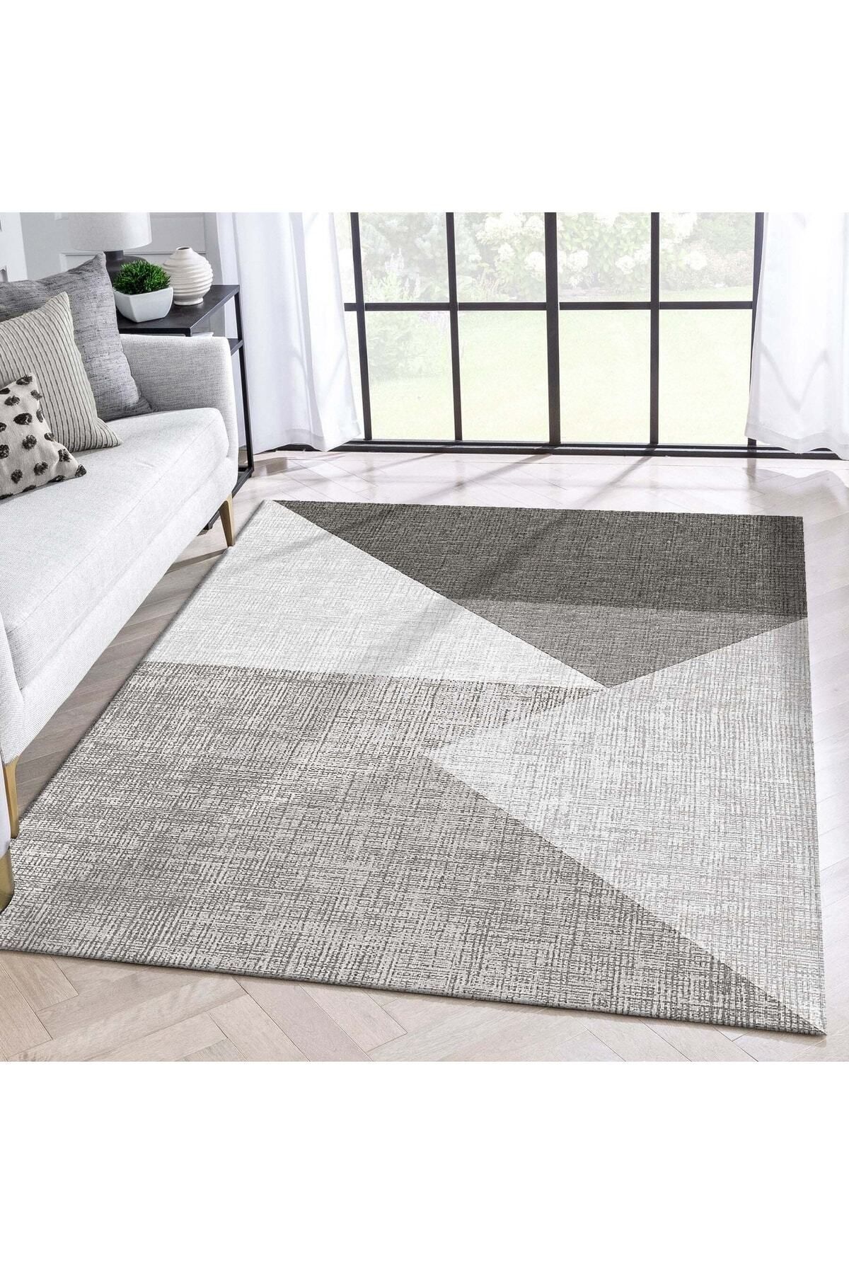 91-süngerli Kahveli Bejli Büyük Üçgen Gemotrik Desenli Kaymaz Lastikli Halı Örtüsü