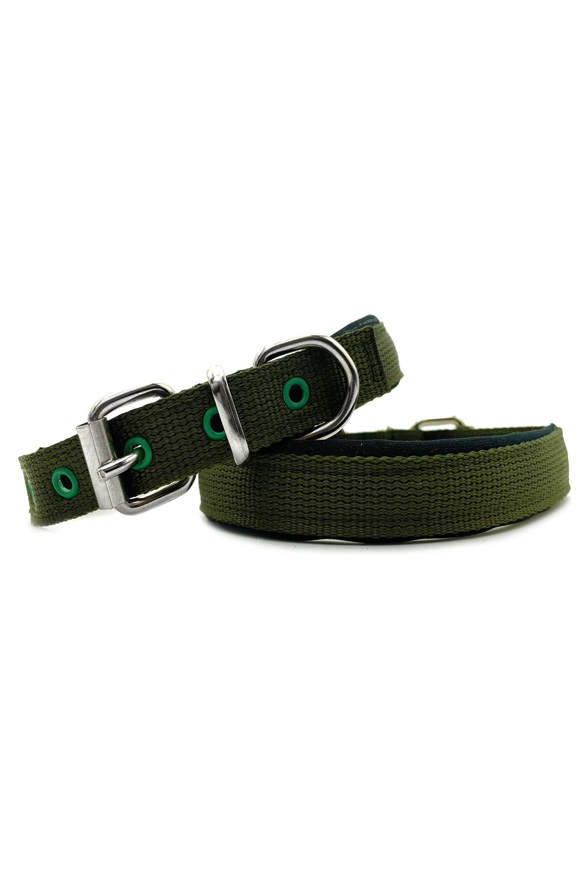 Haki Yeşil Yumuşak Dokulu Kolon Köpek Tasması