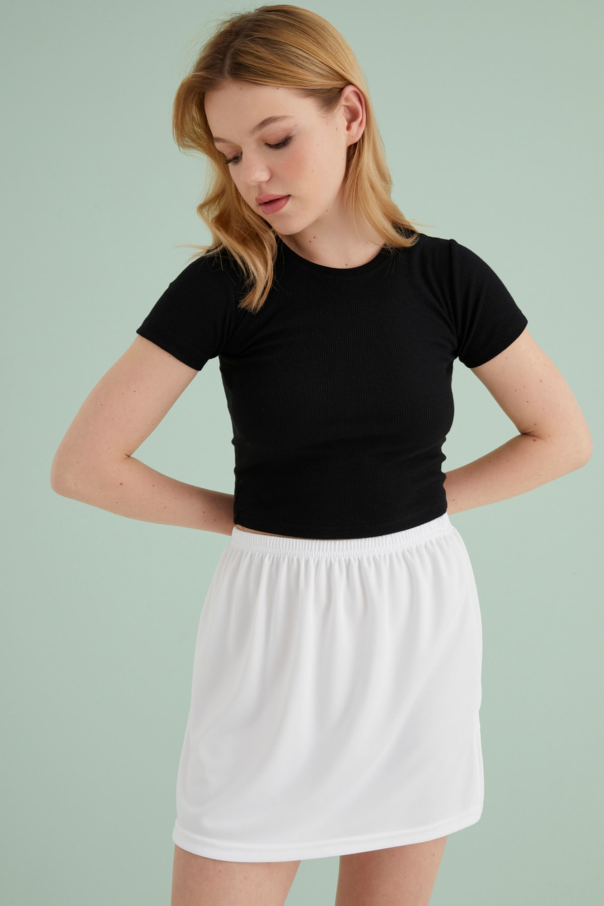 Mini astar jupon mayo içlik etek, sıcak havalarda serinlik ve rahatlık hissi verir